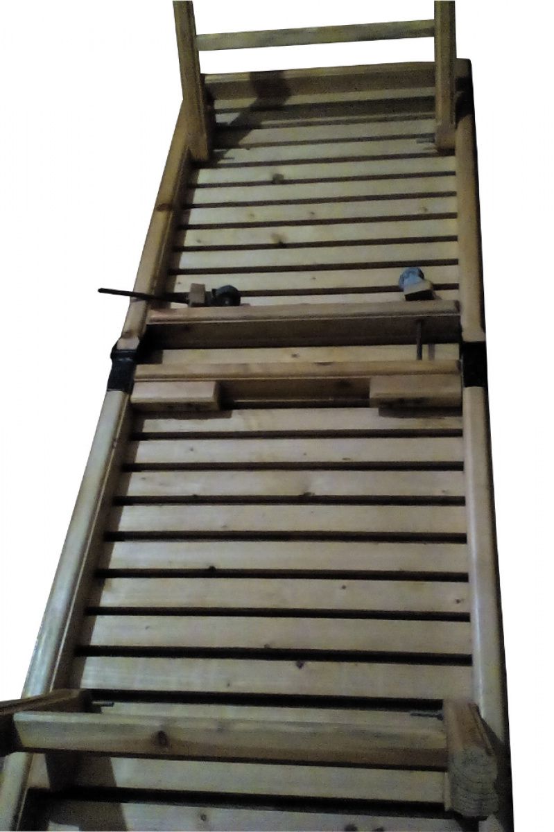 Раскладушка сделана из массива сосны.