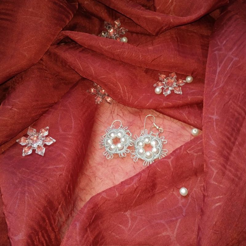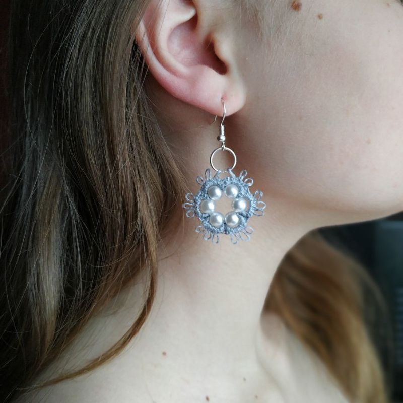Красивые серые Сережки с бусинками-жемчужинками, длина 6 см. Возможен повтор в другом цвете.