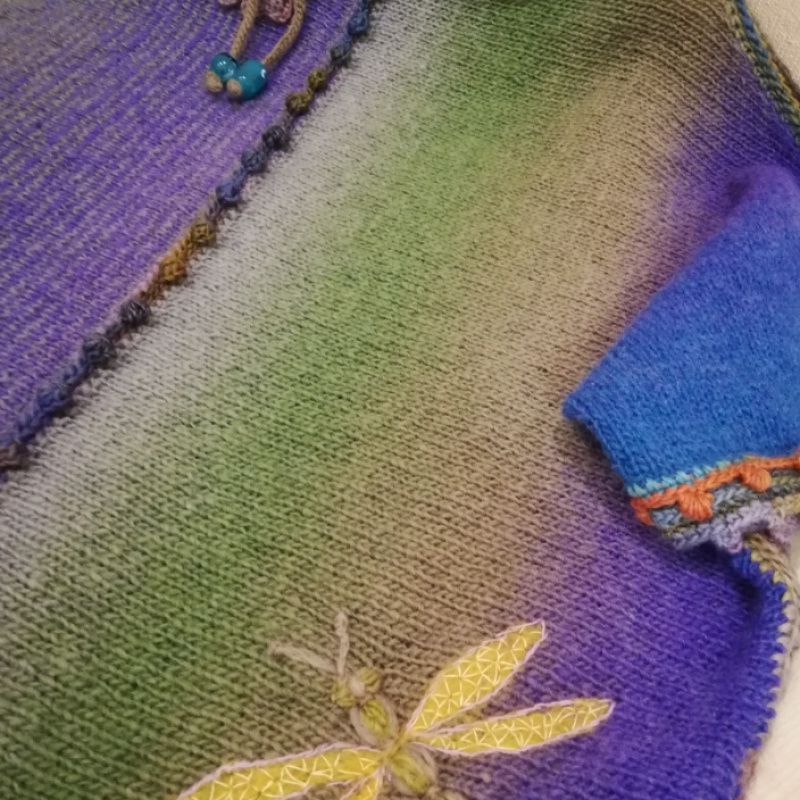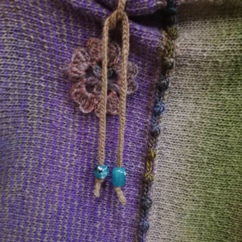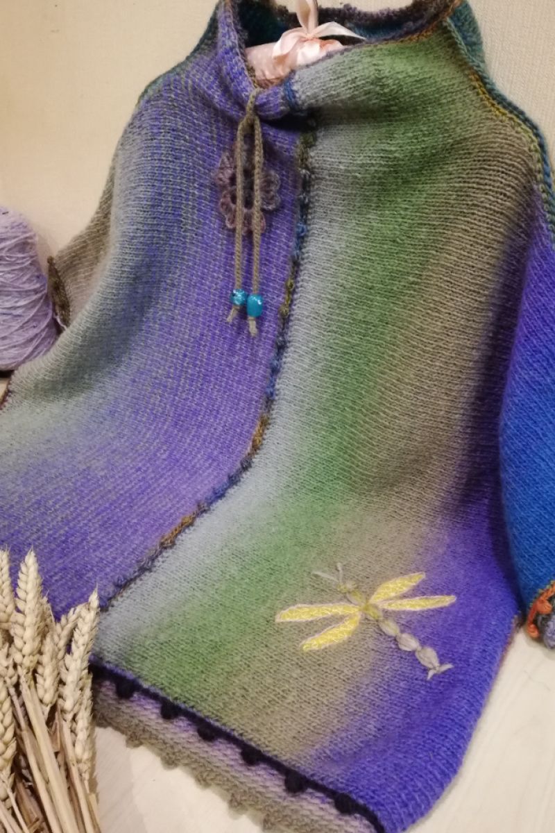 Безрукавка пов'язана спицями з латвійської шерсті Дундага (меринос 35, овеча шерсть 65). злегка підваляно. Украшение-валяние на трикотаже.Модель безрукавки підходить, практично, всім, горловина стійка присборена, на шнурку з намистинами Ширина 56 см, довжина 62 см.