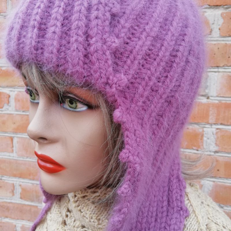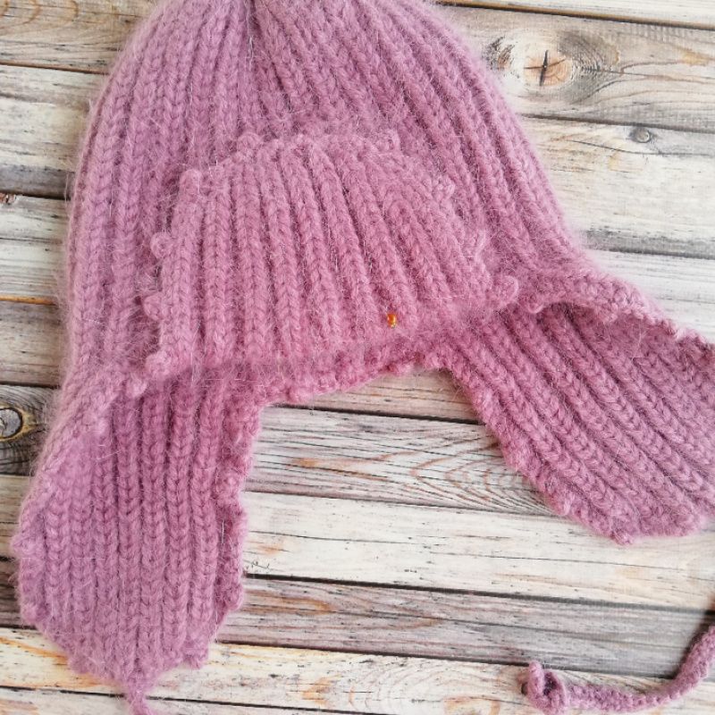 Шапка ушанка связана спицами, обвязка крючком из пуха кролика, цвет пыльна роза Размер 56-58 Уход ручная стирка в прохладной с моющим средством, отжимания в полотенце, придать форму во влажном состоянии, можно продуть феном - режим холодный воздух Шапочка прошла обработку