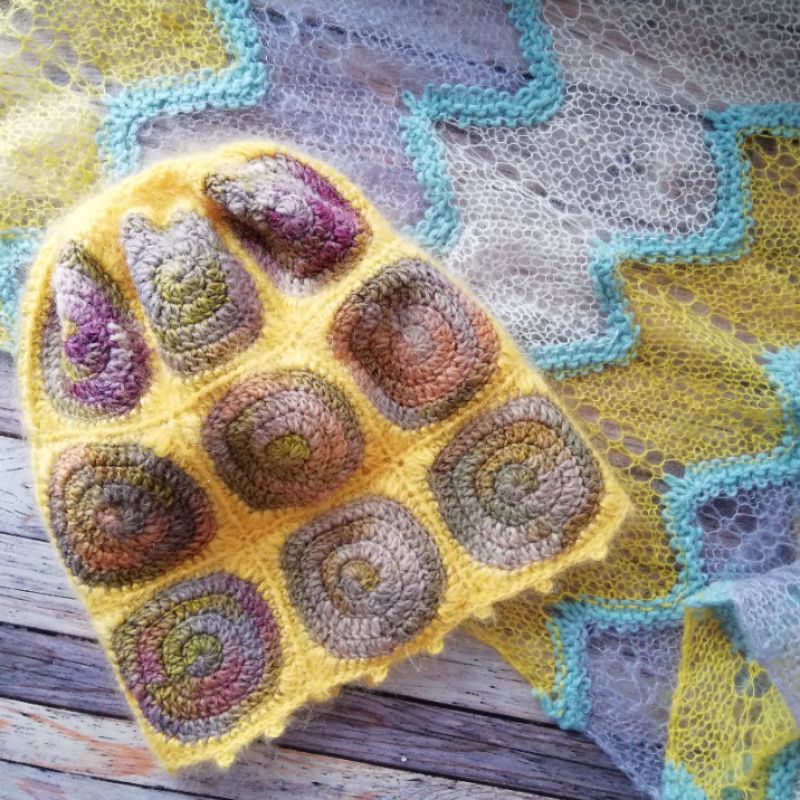 Шапка бини связана крючком в технике пэчворк, пряжа отличного качества (Италия) шерсть 51, акрил 49, кид мохер.