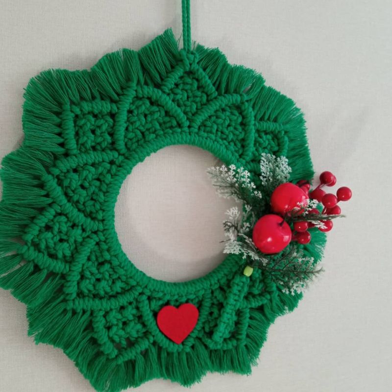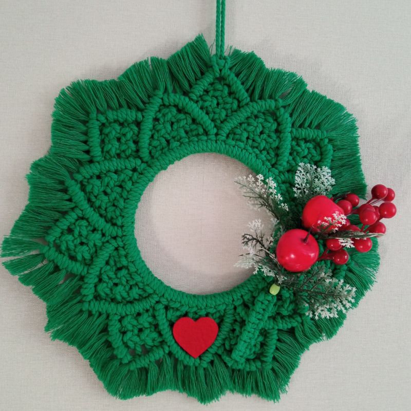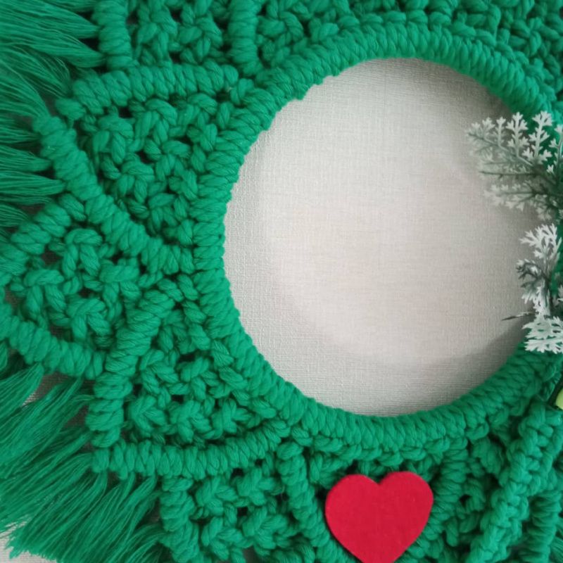 Новогодний рождественский венок. Красивое украшение интерьера для вашего дома , натуральное изделие из хлопковых нитей .