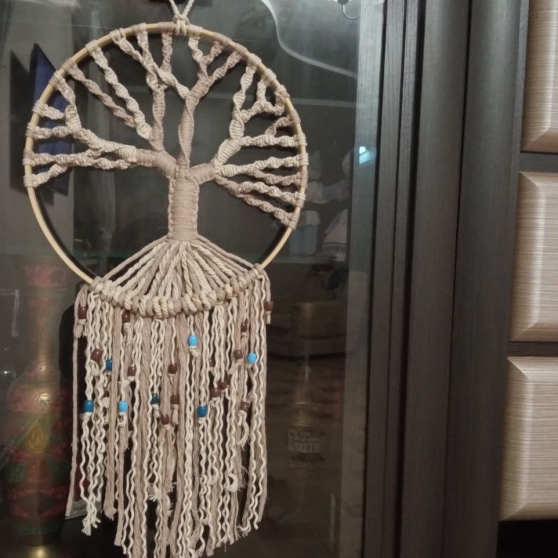 Семейное дерево. Красивый, необычный подарок и украшение интерьера вашего дома. Натуральные материалы: нити хлопковые , кольцо дерево,