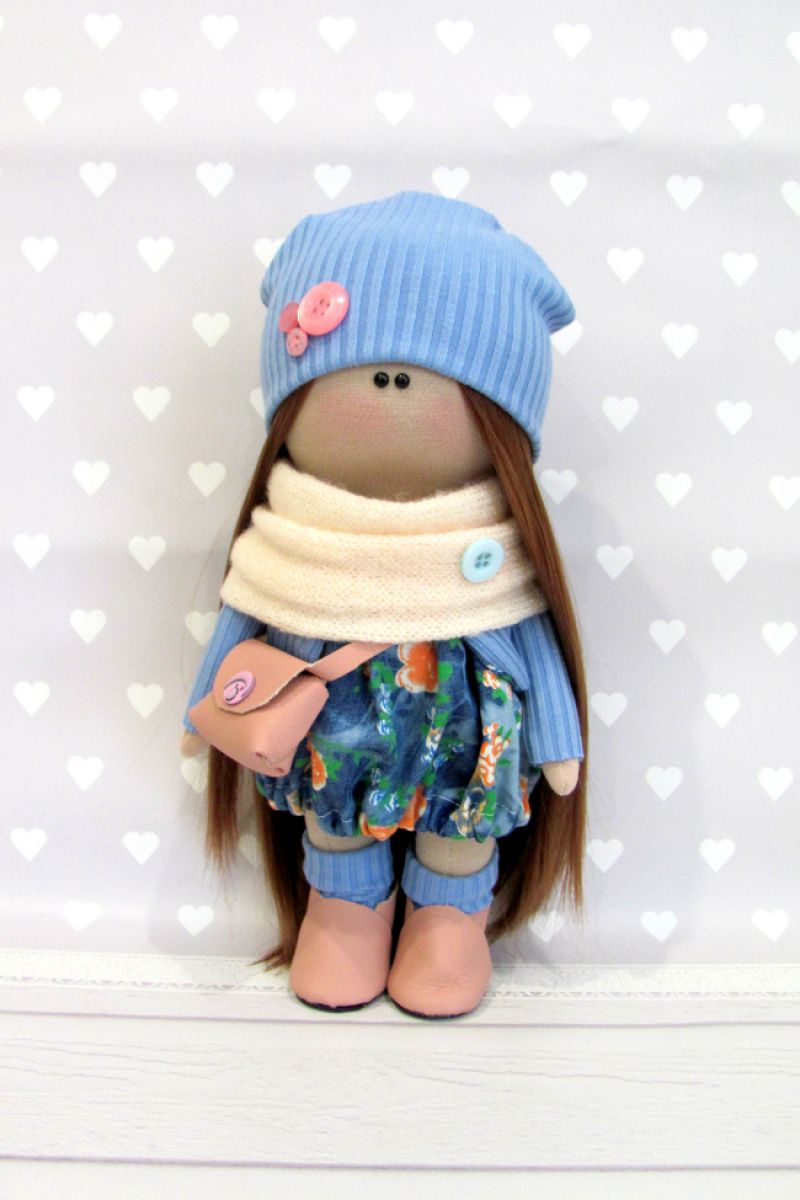 Очаровательная кукла . Ручная работа. Кукла интерьерная, текстильная. Рост с шапочкой 28 см. Самостоятельно стоит. Одежда не снимается