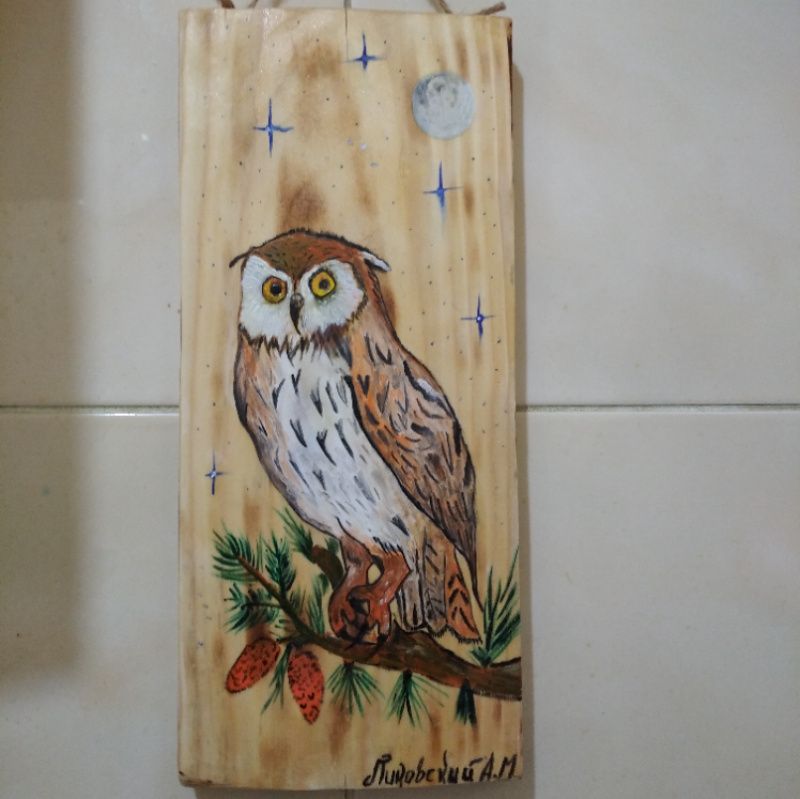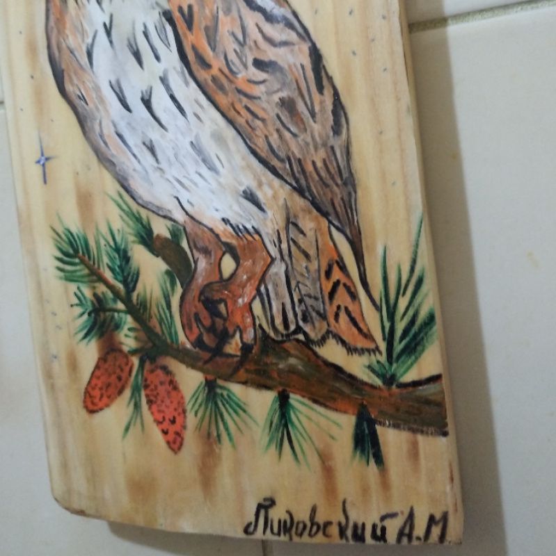 Доска с обжигом, рисунок вскрытый лаком.