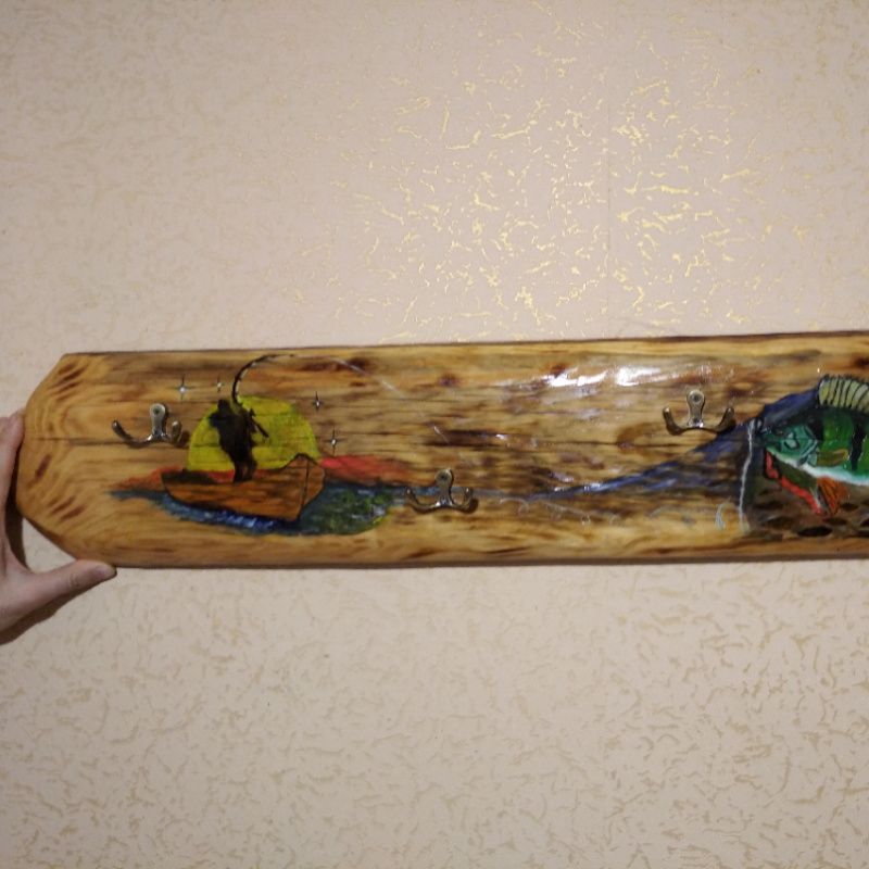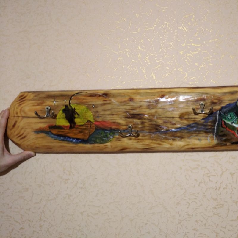 Вешалка для одежды. Материал- дерево, длинна- 70 см, высота 15см, толщина 2 см