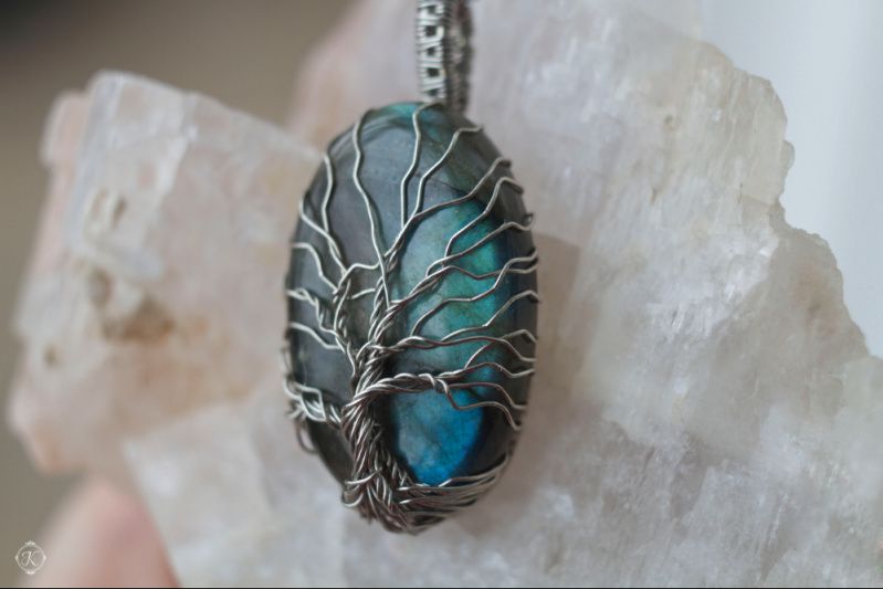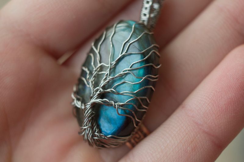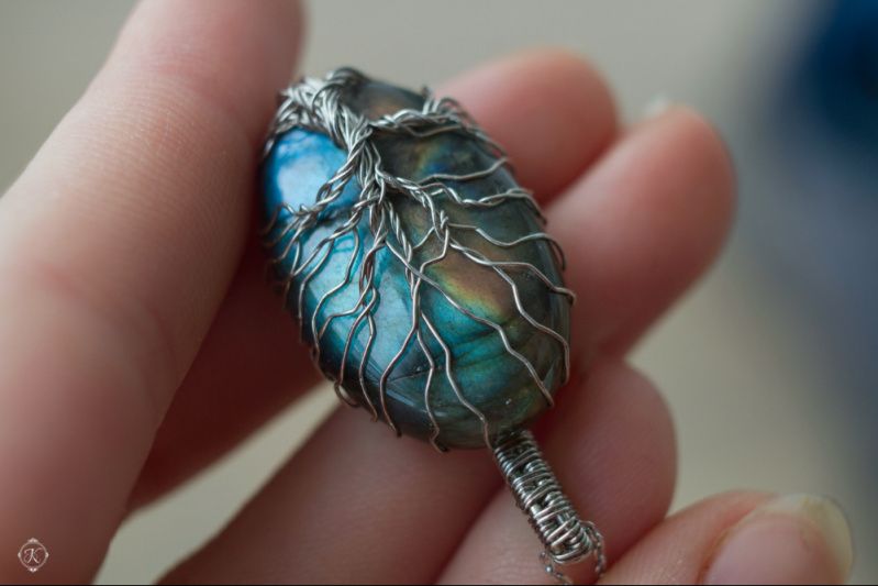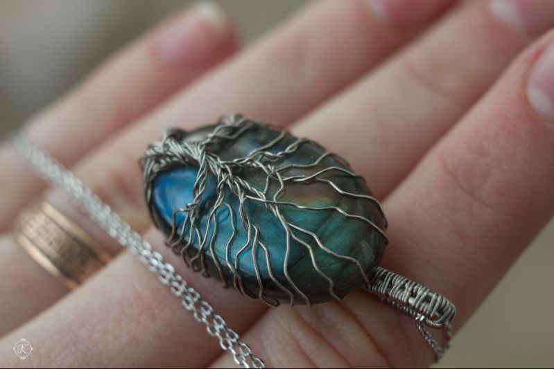 Дерево жизни - мощный и позитивный символ, обозначающий связь со своим родом. Он связывает землю и небо, а также человека и его божественное начало. Значение его в том, что он символизирует плодородие и возрождение после смерти. Кулон-оберег выполнен из лабрадора (лабрадорита) на котором выплетен символ из нейзильбера. Камень мягко переливается сине-зелёным цветом в лучиках света, напоминая северное сияние или таинственный космос.