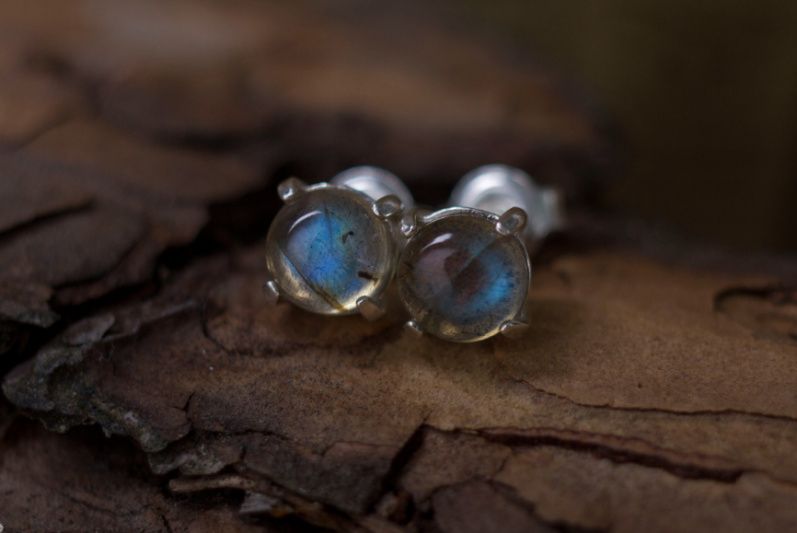 Материал: серебро 925 пробы, кабошон натурального лабрадорита . Обратите внимание, так как пусеты ручной работы, на них нету пробы!
