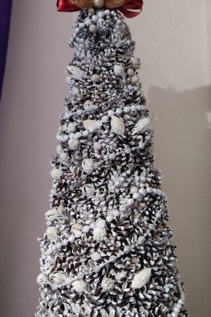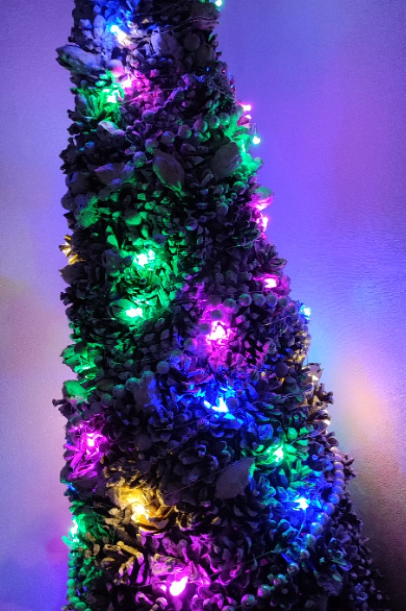 ЭКО Ёлка ручной работы из сухоцветов и шишек .С встроенной подсветкой.