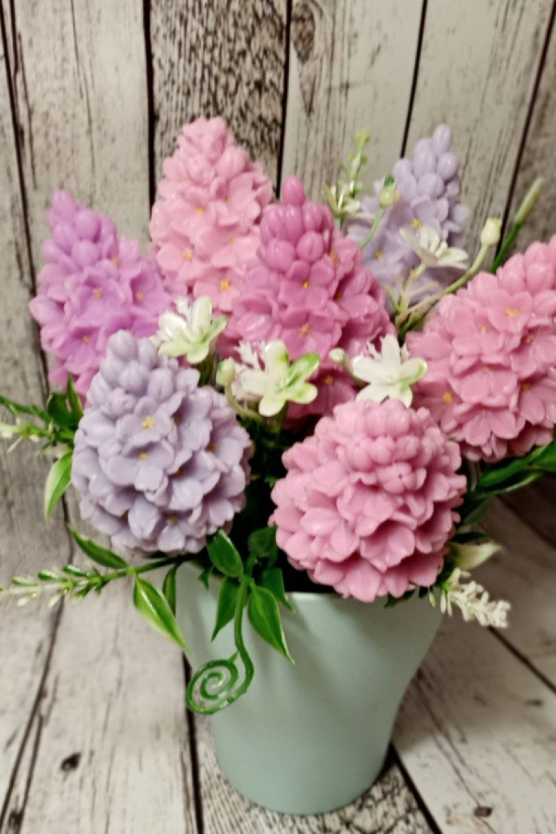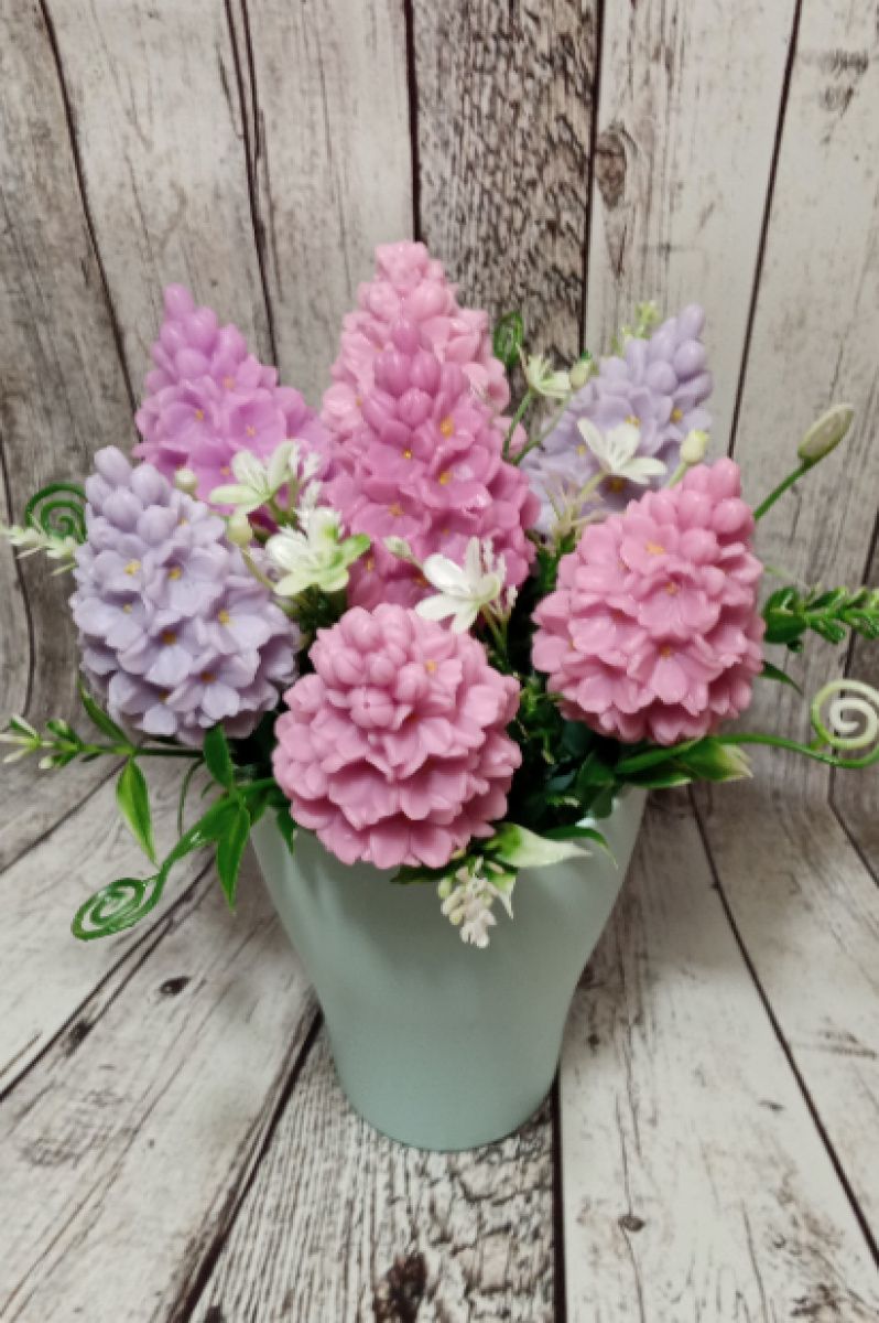 Букет сирени с мыльной основы, добавка искусственной зелени, кашпо пластик