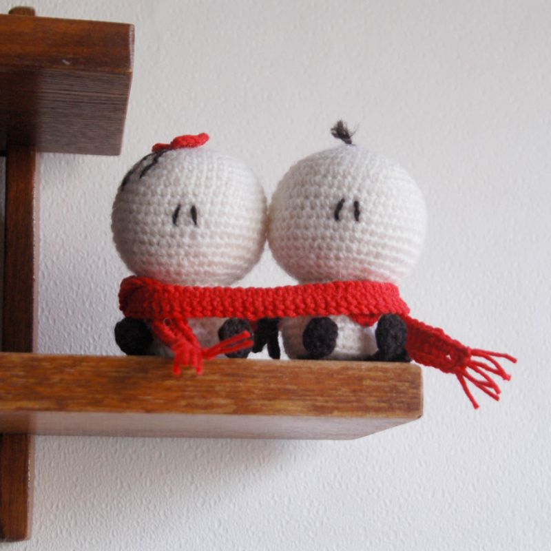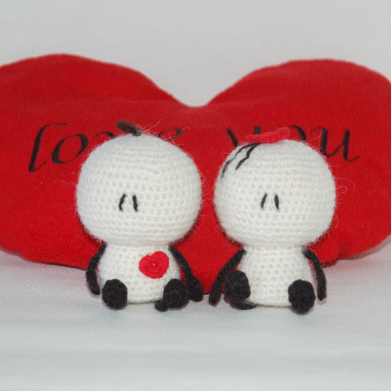 Этих милых и очень трогательных малюток зовут Бигли и Мигли. И между ними большая любовь. Стикеры Бигли и Мигли создала иранский иллюстратор Sepideh Davoodi. Связаны вручную. Высота сидя - 8 см.