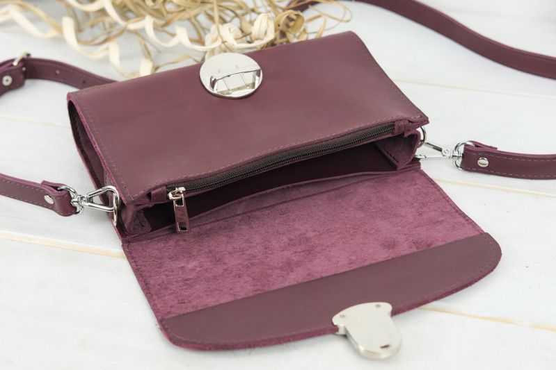 У сумочки вместительное основное отделение. Внутри два дополнительных кармана, один из которых на молнии.