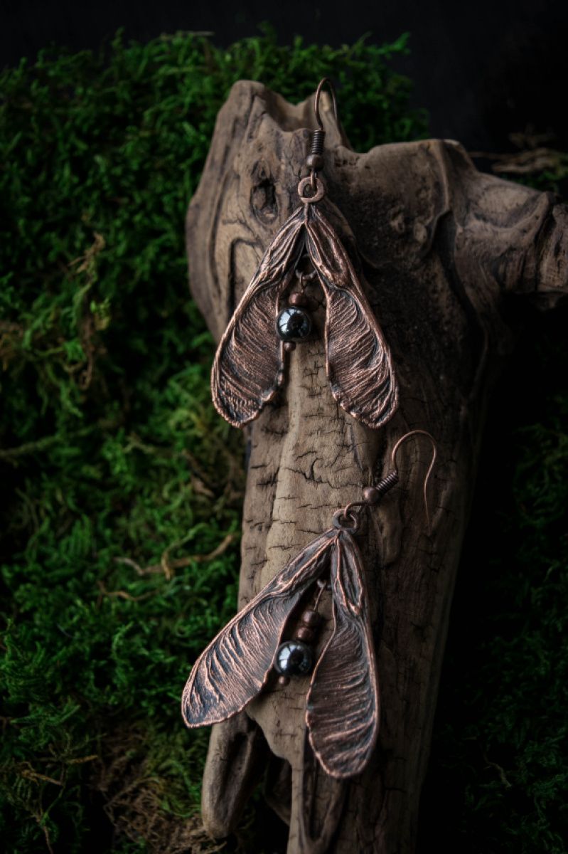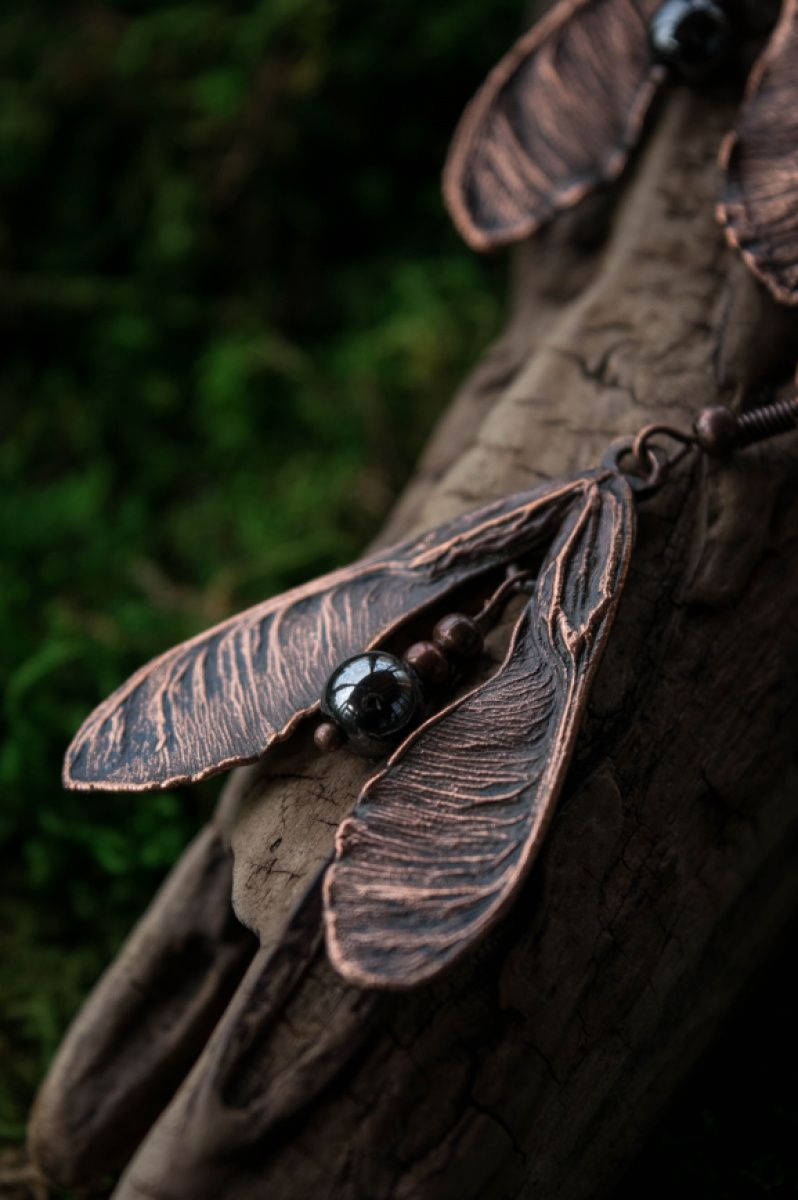 Настоящие крылатки покрытые медью. Бусины - гематит. Размер без швензы - 3,6 х 3 см