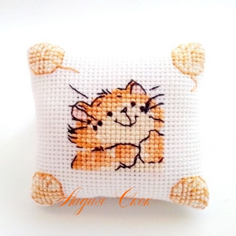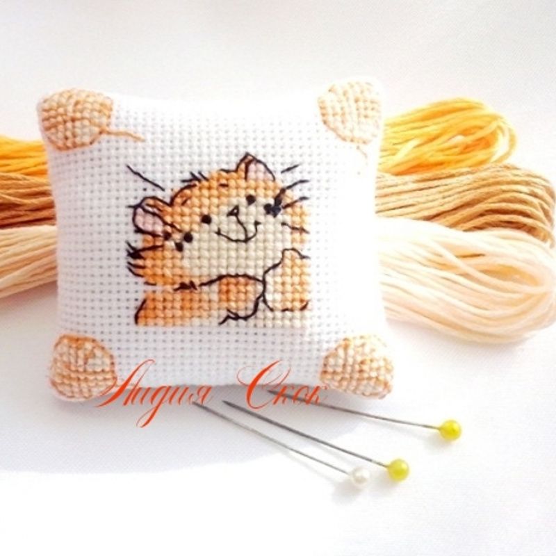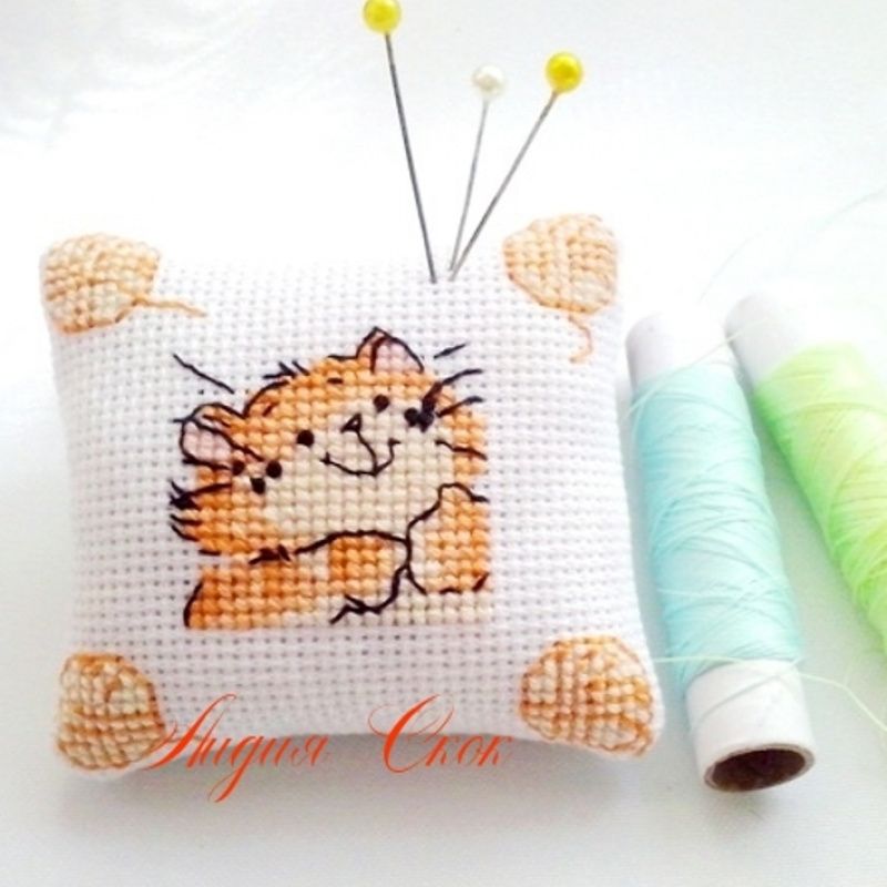 Игольница с котиками – уютная помощница в рукоделии! Идеальный подарок любителю кошек! Подушечка может служить не только как игольница, но как красивый, стильный предмет интерьера или аксессуар для фотосессии. __________________________________________ Подушечка -гольница вышитая и собрана вручную. Наполнитель: синтепон. Размер подушечки 7Х7 см. Есть в наличии-1 шт. __________________________________________ Милая подушечка будет удобным и полезным помощником рукодельницы-теперь все иголки будут всегда под рукой!