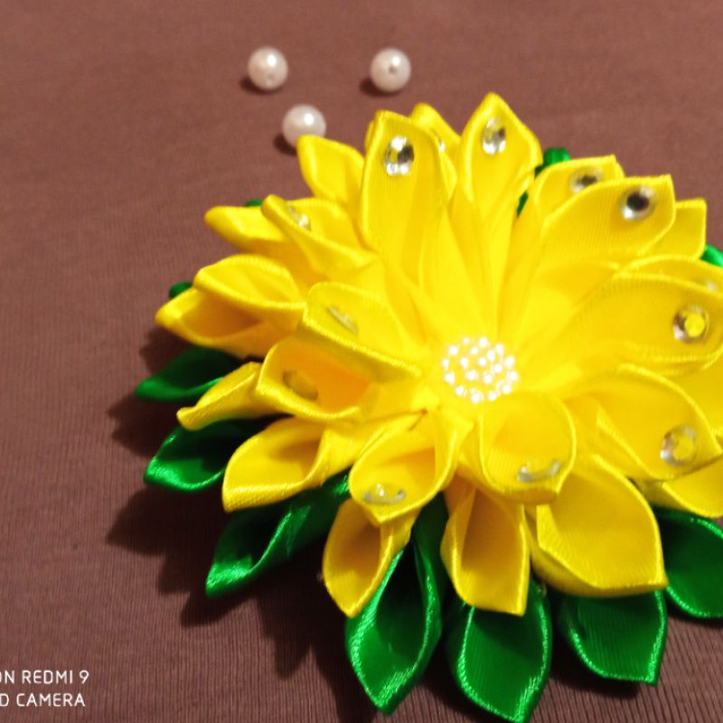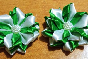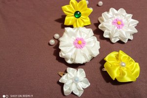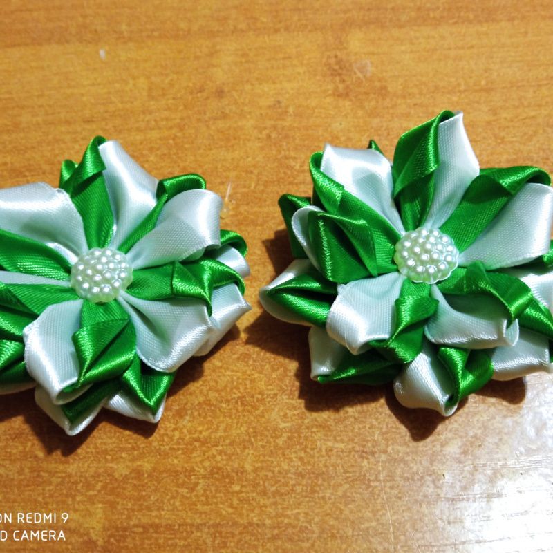Заколочки изготовлены из атласной ленты., Заколки автомат, и резинка.