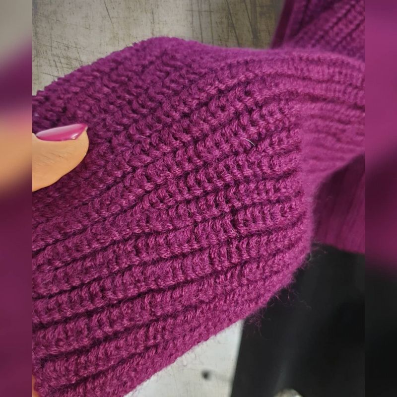 Обнимательный свитер в очень красивом цвете "смородина" из пряжи в составе которой 50% мериноса и 50% ПА