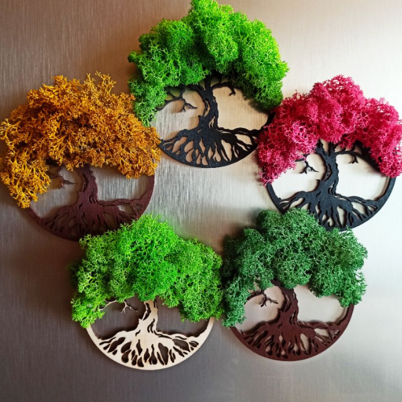 Магниты на холодильник "Дерево жизни" со стабилизированным мхом. Диаметр дерева 10см. Возможно исполнение в другой цветовой гамме. Мох будет сохранять свою эластичность долгие годы при влажности воздуха не менее 40%.