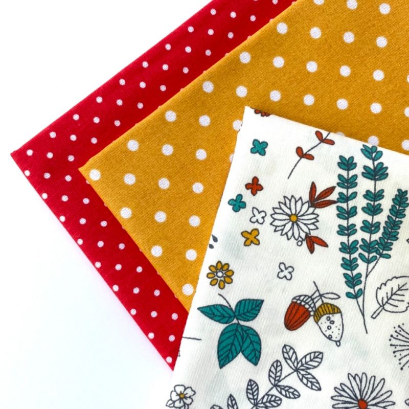 Наборы тканей для рукоделия: 1) красный горошек (бязь) отрез 50х40 2) горчичный горошек (бязь) отрез 50х40 3) веточки (Сатин) отрез 50х40 К каждому заказу подарок