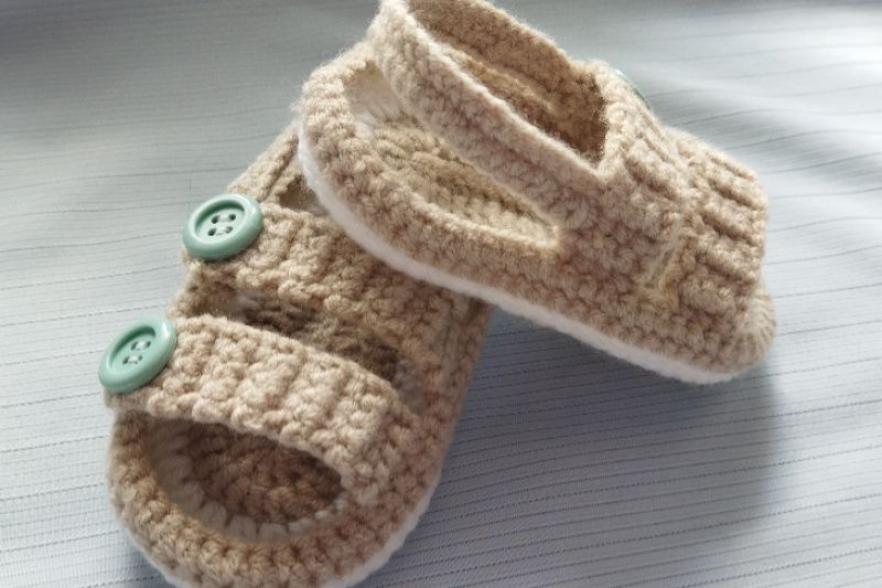Милые и симпатичные вязаные сандалики для малышей. Длина подошвы 10.5 см. Нить акриловая с бамбуком.