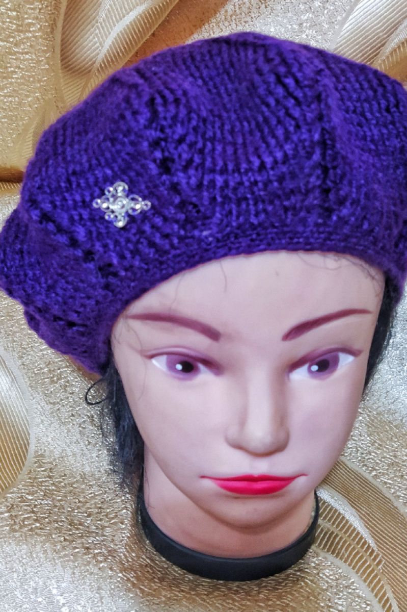 Легкий весенний берет приятного фиолетового цвета.