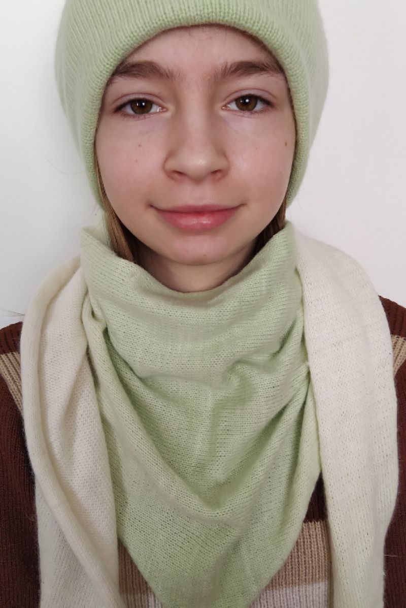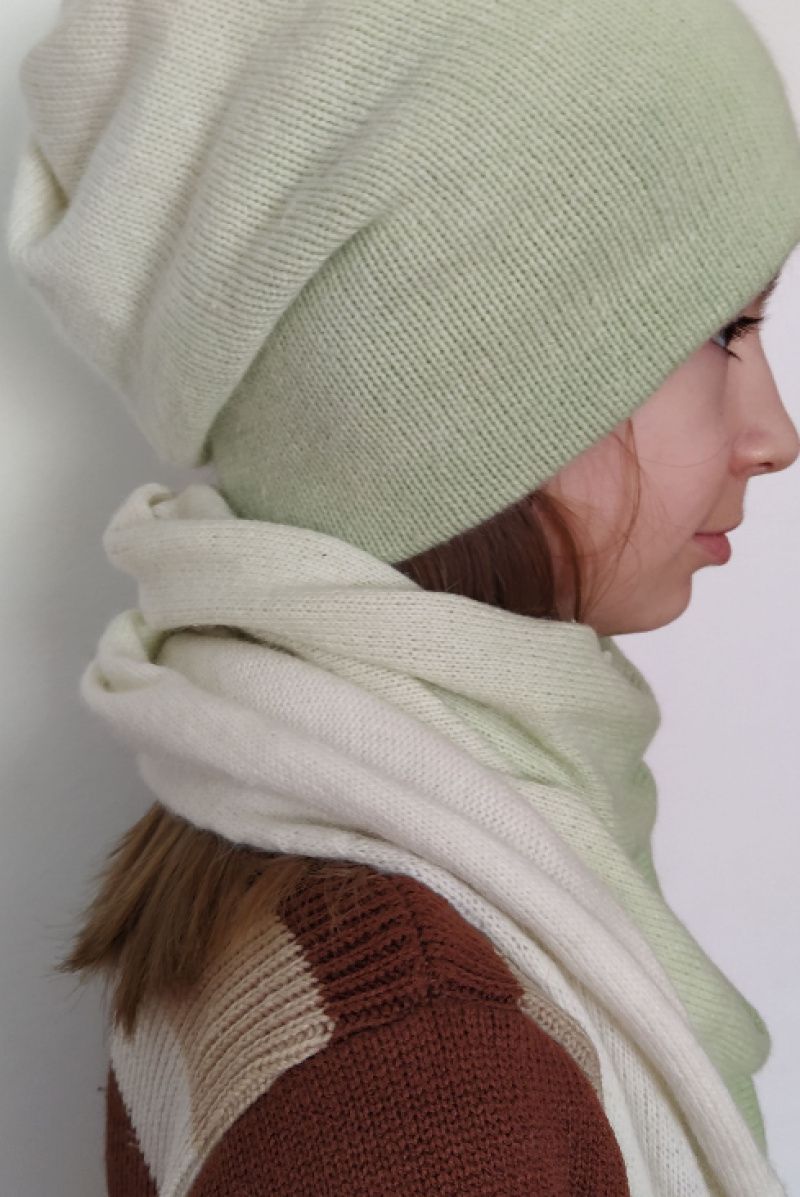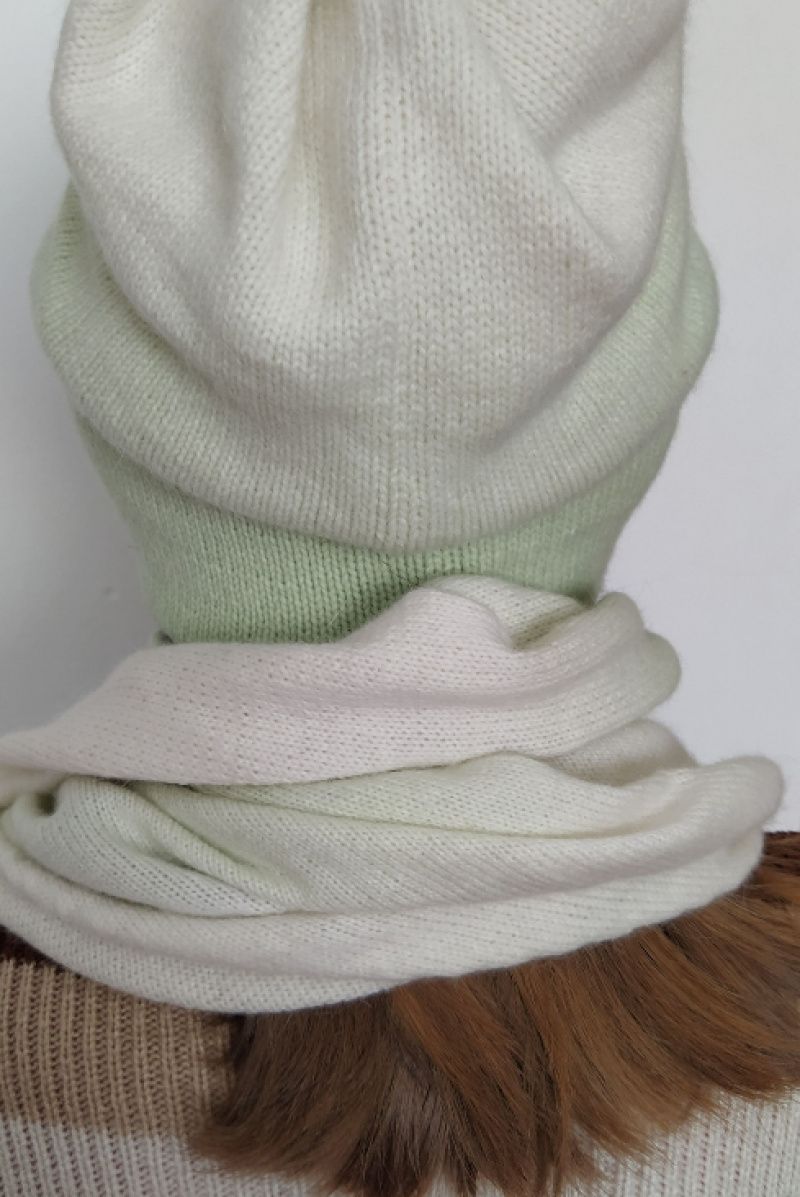 Теплая шапочка и бактус с ангоровое пряжи с плавным переходом цветов.