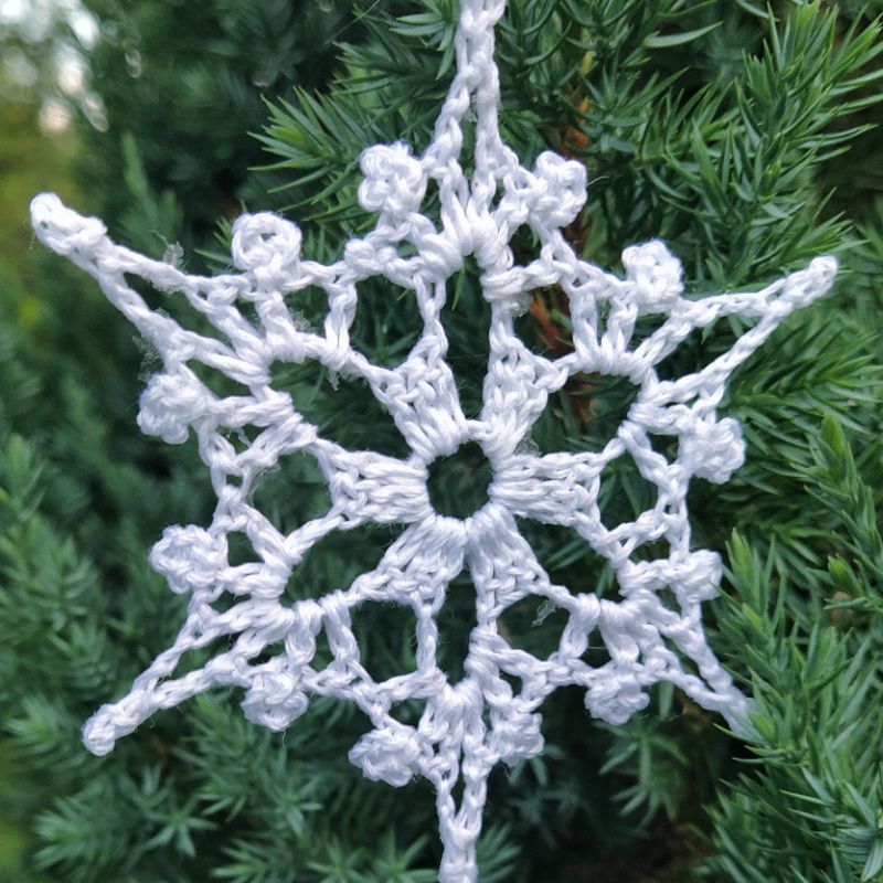 Ажурная вязаная снежинка на елку или для декора интерьера. Хорошо накрахмаленная, прекрасно держит форму. Прослужит не один год.
