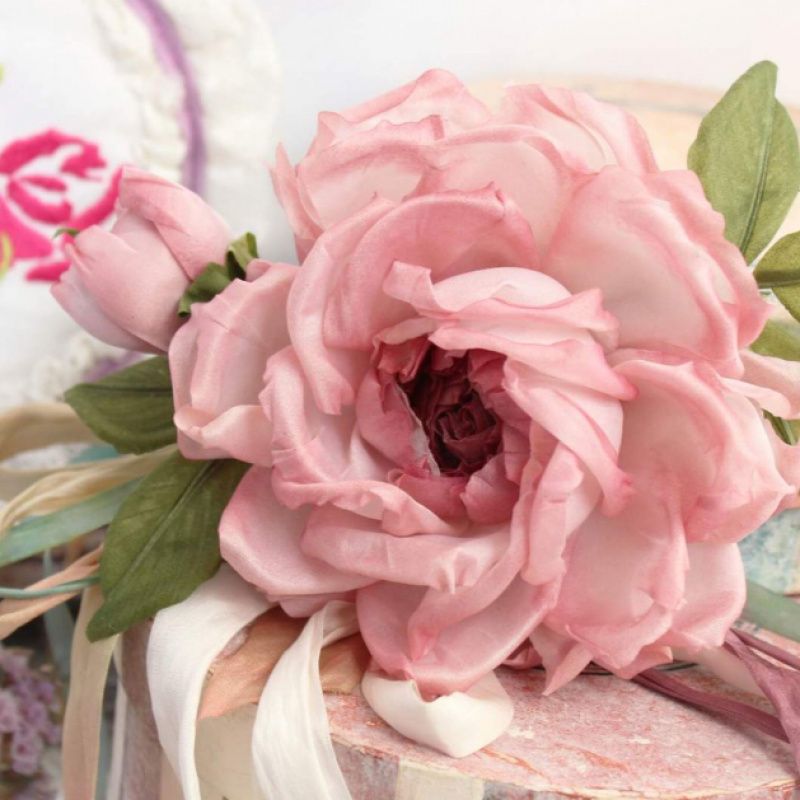 Каждый лепесток и листик окрашены вручную. Диаметр ок . 10см. Крепление универсальное булавка , зажим.