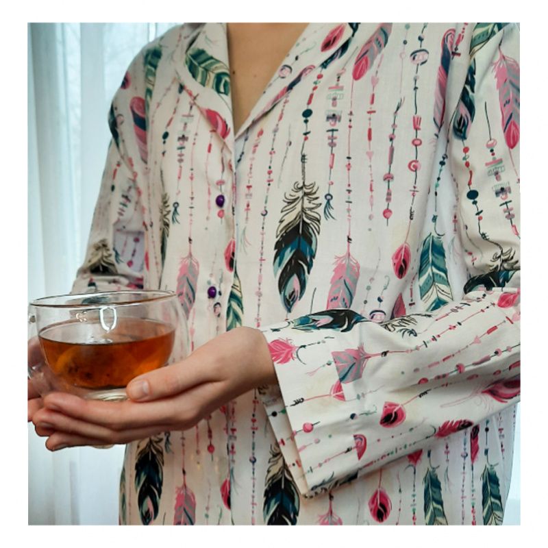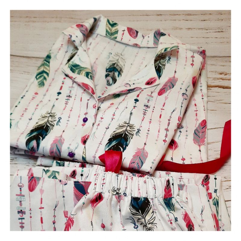 Пижама создана с польской качественного хлопка.По авторским лекалам, за счет чего пижама сидит очень комфортно и удобно, не сковывает движения.