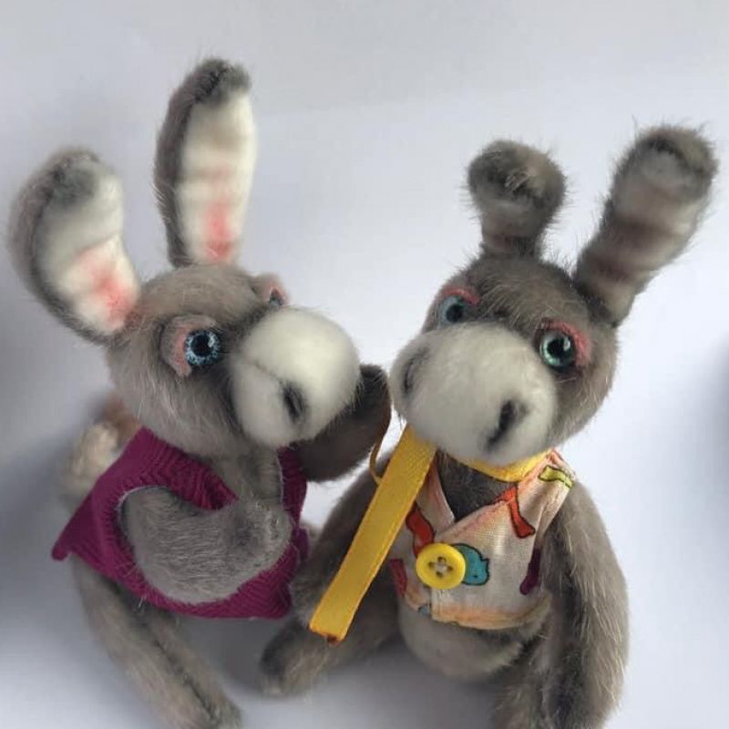 Осел с подвижными ножками, ручками. Глаза стеклянные.