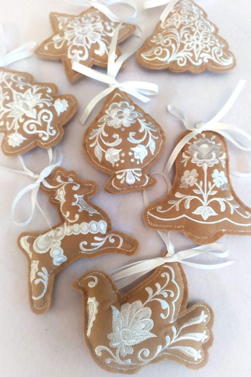 Набор елочные украшения. 7 шт, машинная вышивка, качественный фетр.