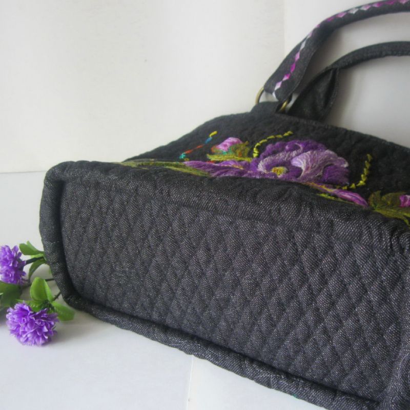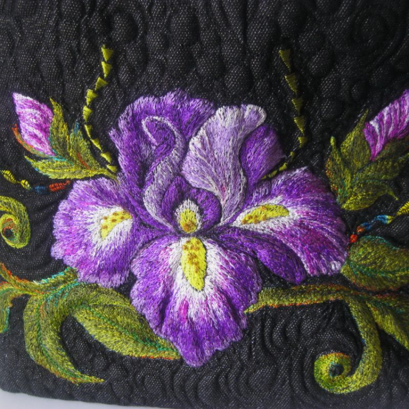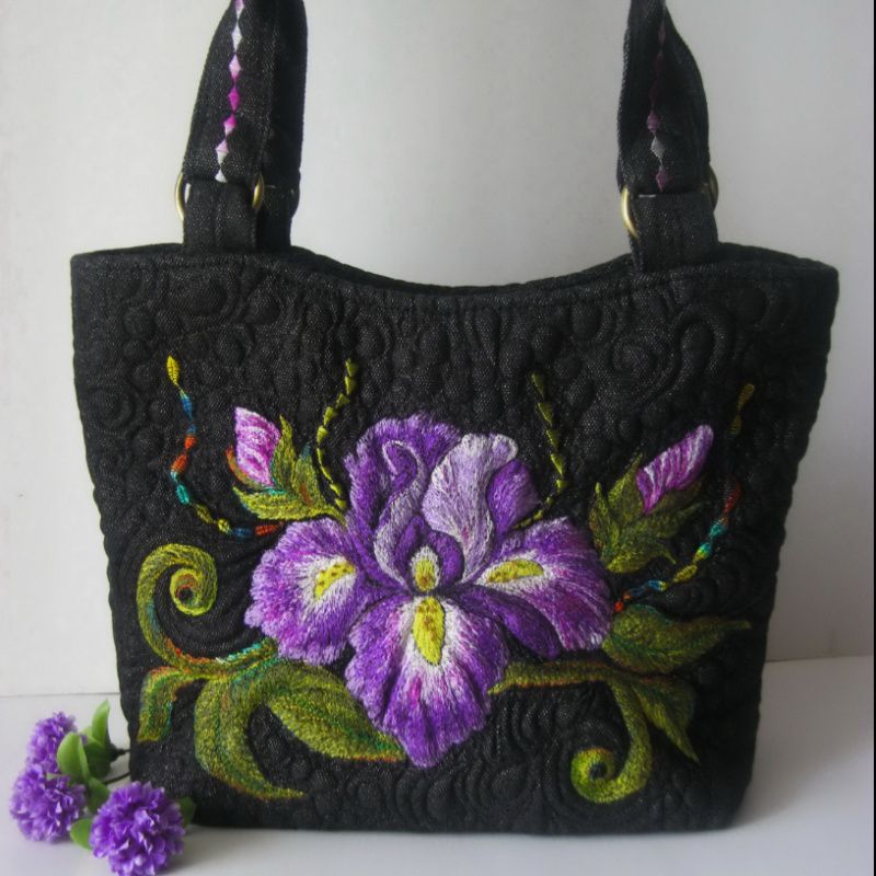 Оригинальное, яркое, вышитая сумка "Ирисы". Компактная, но довольно вместительная. Может быть использована как вечерняя так и повседневная. Вышитая машинной вышивкой шелковыми нитками. Простеганная в технике квилтинг. Прекрасно держит форму. Имеет четыре внутренних кармана, в т.ч. один большой на молнии. Ручки недлинные - 48 см, для ношения сумочки в руке или на локте.