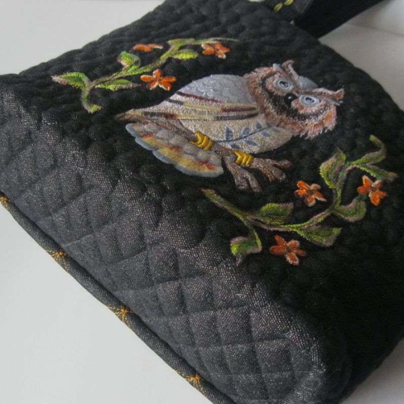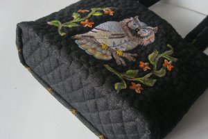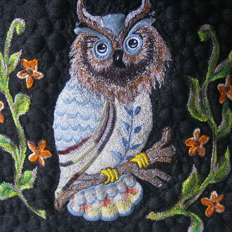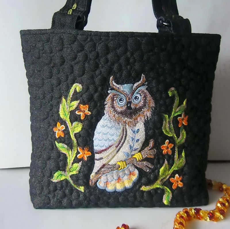 Текстильная сумка "Сова" выполнена в комплексе техник: аппликация, машинная вышивка и машинная стежка (квилтинг). Сумочка интересна не только вышивкой но и необычной фактурой, которая достигается машинной стежки. Легкая, практичная, при этом вместительная и устойчивая. Внутри 4 больших кармана, в т.ч. одна большая на молнии. Сумка выполнена из прочной джинсовой ткани.