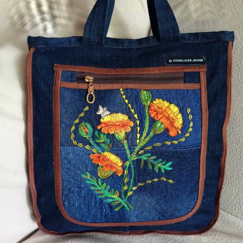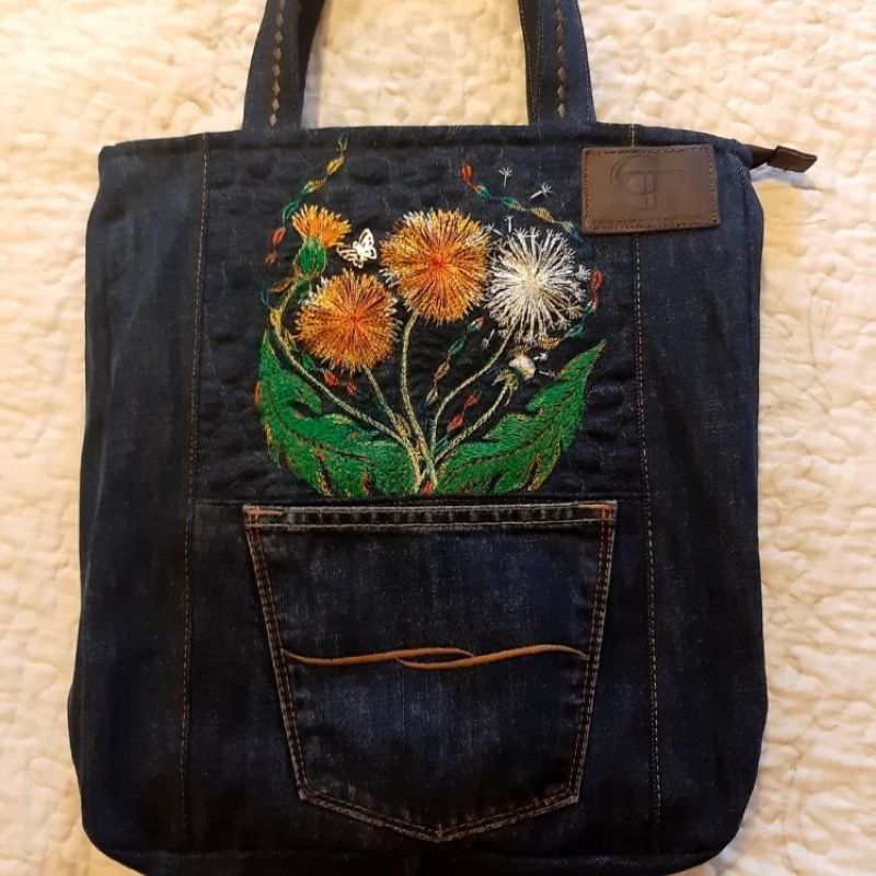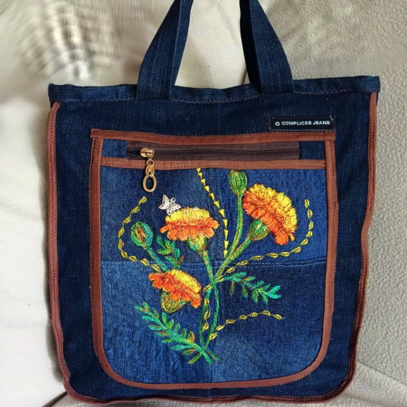 Сумка шоппер выполнена из джинсовой ткани. Украшенная вышивкой на ваш выбор. Возможна вышивка по вашей картинке. Имеет карман сверху и внутри. Застежка на молнии. Сумка на подкладке. Легкая, состоит в небольшого размера.