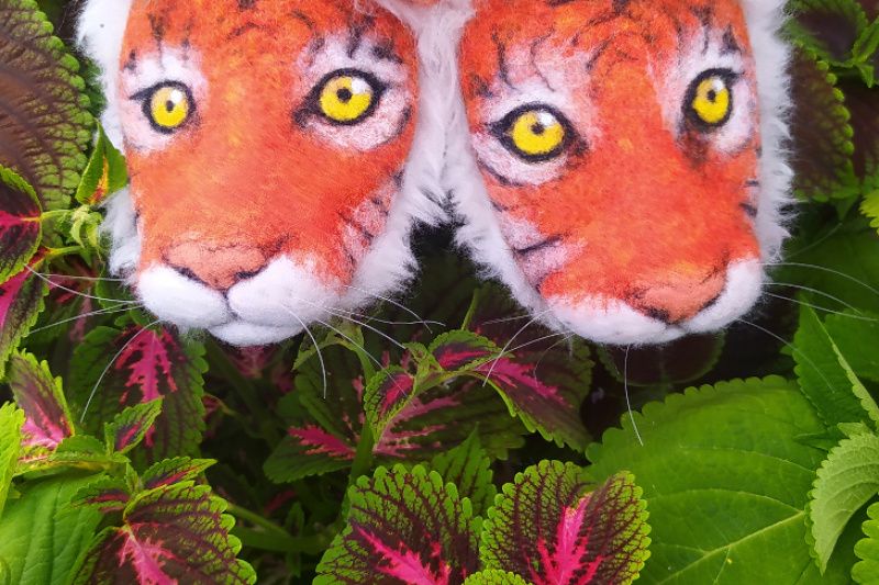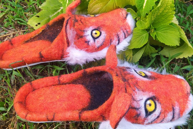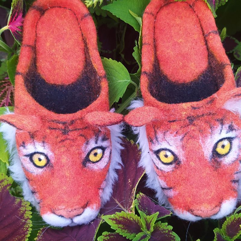 Тапочки валяные Тигры из натуральной шерсти, практическая подошва из микропористой резины. Теплые, полезные, удобные в использовании, а главное - оригинальные, такая домашняя обувь станет прекрасным подарком для родных, друзей или для себя любимой)). Эта пара сделана в размере 38-39, ориентируйтесь на размер стельки в 25 см.