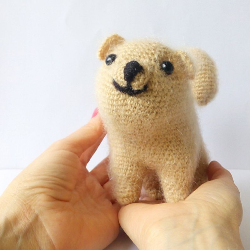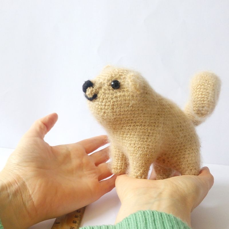 Собака вязаная крючком из теплой пряжи из ангоры. Наполнитель - холлофайбер. Мордочка и носик вышитые, глазки - приклеены. Легкая, приятная на ощупь. Может стать верным другом-игрушкой ребенку. А еще хорошим дополнением интерьера. Высота игрушки - 12 см (с хвостиком - 14 см). Длина по спинке - 17 см. Наполнитель - холлофайбер