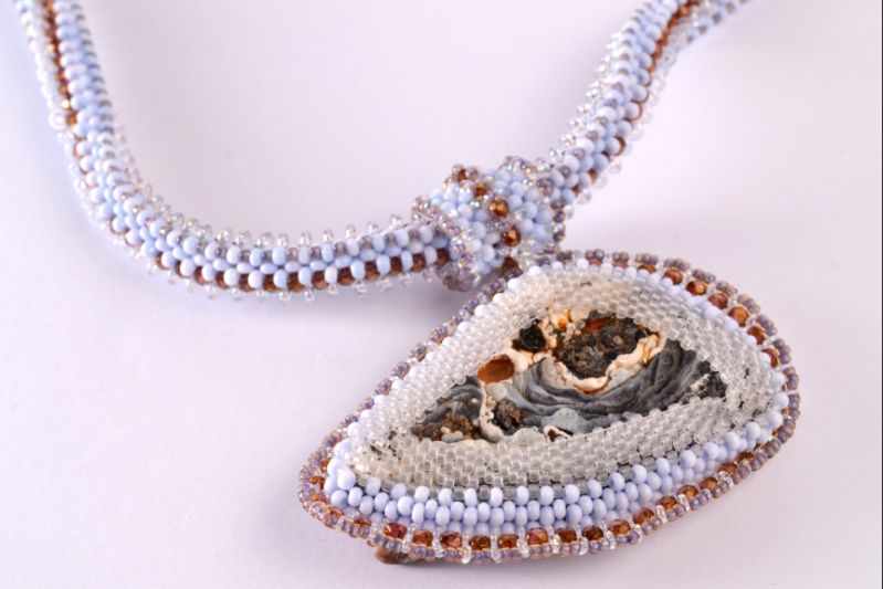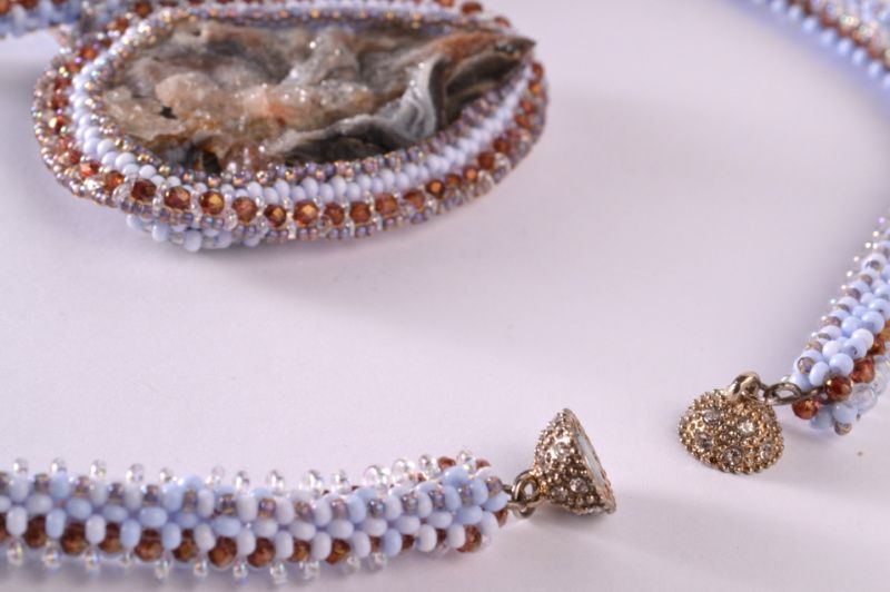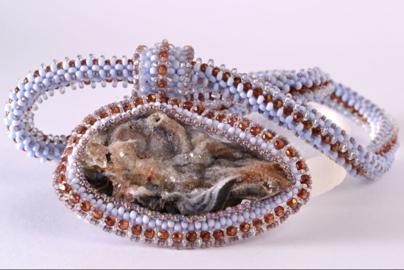 Уникальная халцедонового роза во всей своей дивовижности. Окаменелое дерево покрылось мириадами искр и проросло чистыми кристаллами хрусталя, их блеск завораживает, а сияние блесток мерцает и пленит сказочностью украшения. Удивительный подарок для женщины - уникальный, неординарный, обаятельный, он способен подчеркнуть яркую изысканность, нежность, сказочность, загадочность каждой женщины.