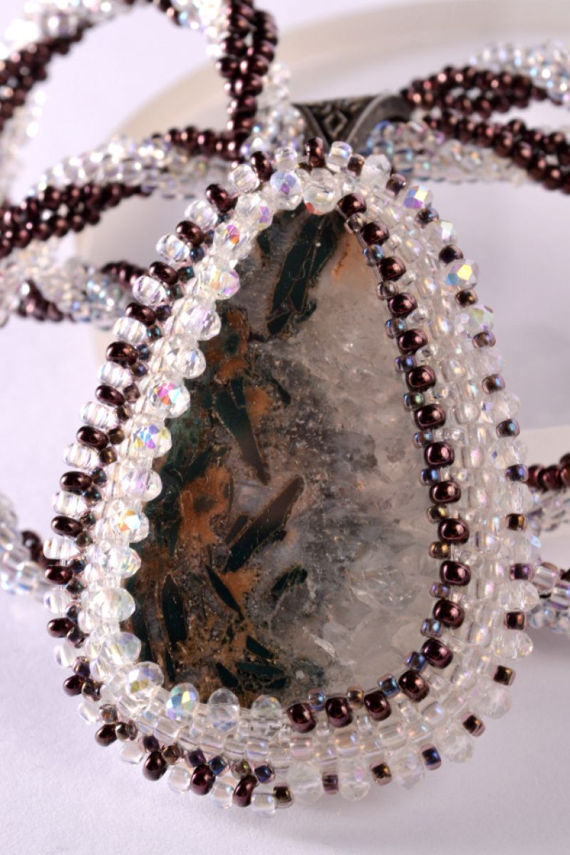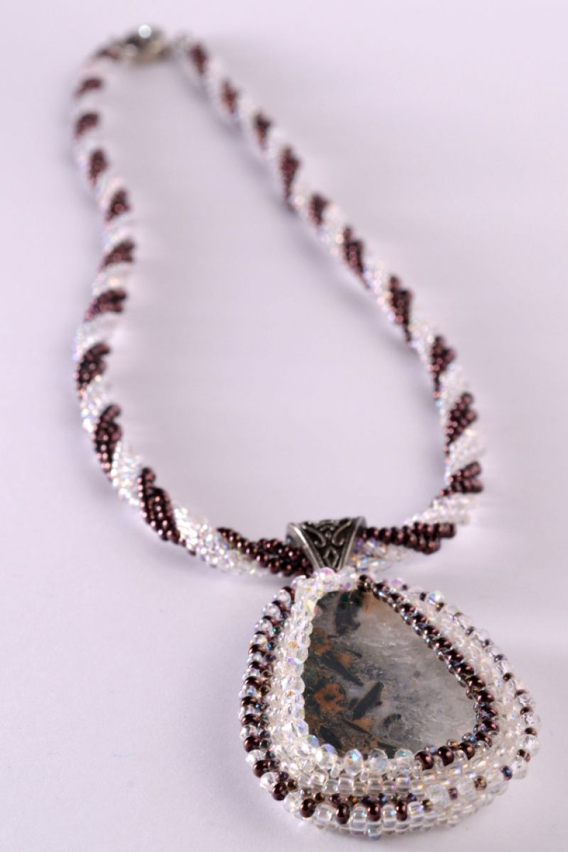 Уникальный камень о сочетании несочетаемого. Постоянство земли и Хрусталь воды. День и ночь. Тепло и Холод. Мужской и женочий начало - слияние воедино в целое, неразрывное, неделимое. Целостность. Земная яшма-брекчия и ледяной квац. Блеск полупрозрачного в отличие отличие от матового тона. Очаровывает, завораживает, притягивает взгляд. Каждая женщина сразу попадет в центр внимания, изысканность, стильность придадут уверенности в себе, чтобы стать Королевой бала. Неординарно, истинно королевский подарок для женщины.