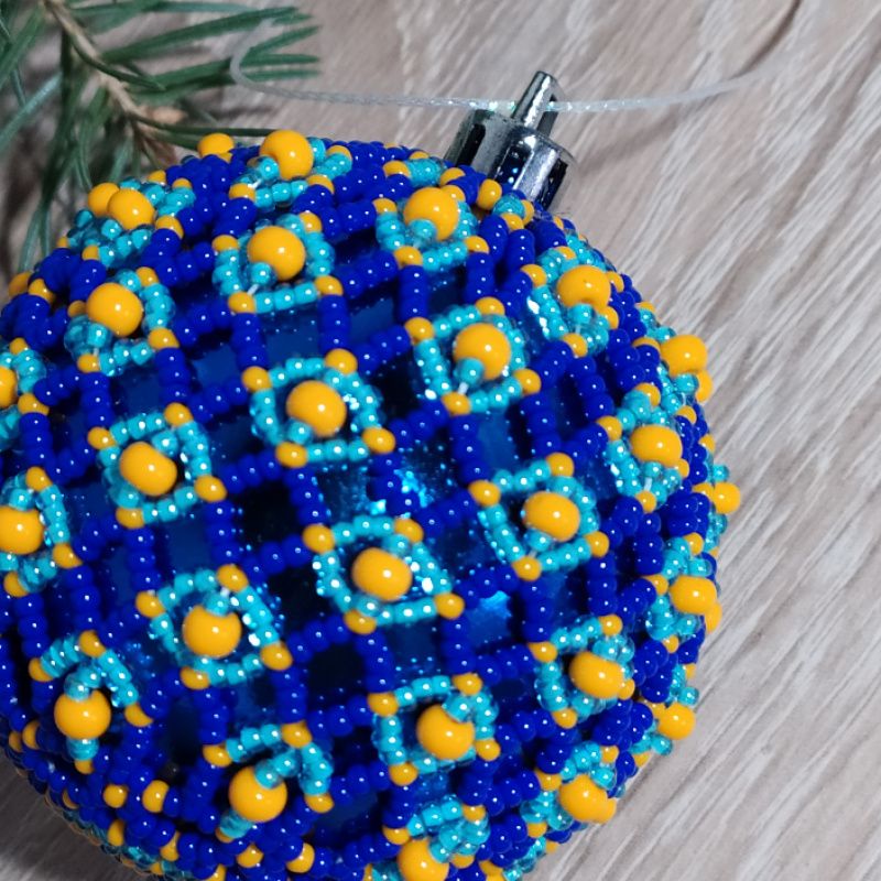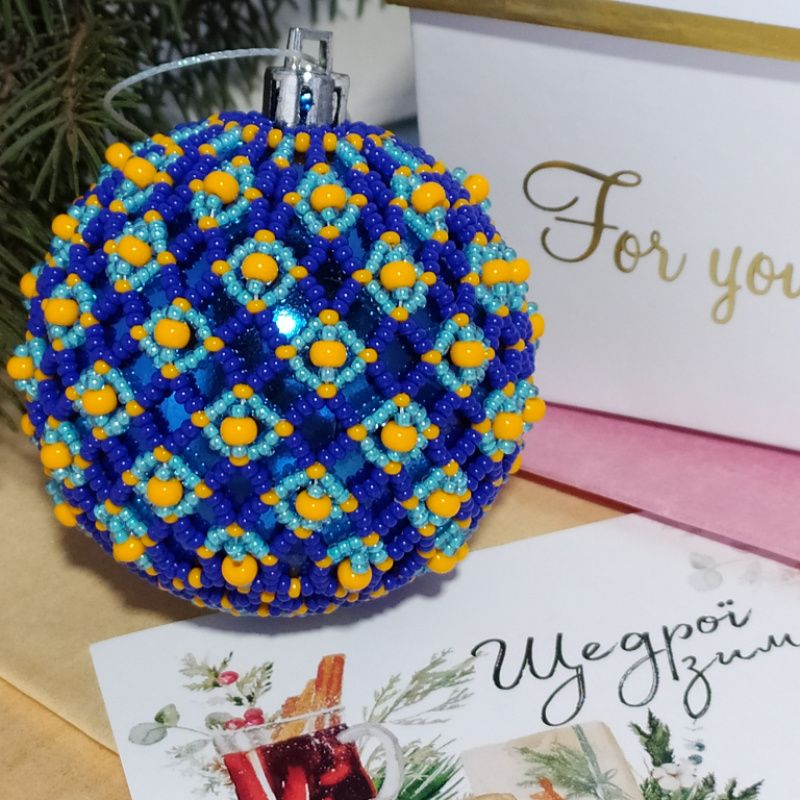 Яркое украшение к празднику, оригинальный подарок коллеге или дорогому человеку. Новогодняя игрушка ручной работы. Задекорированная в технике бисероплетения бисером разного размера. Диаметр шара 7 см. ⠀ Каждая игрушка упаковывается в подарочную коробку.