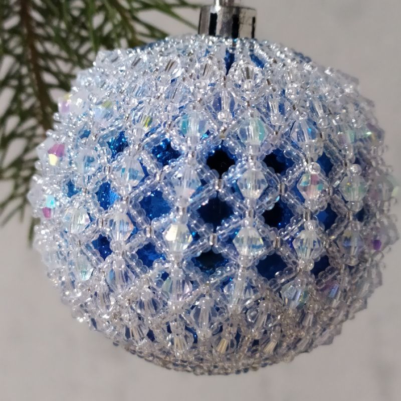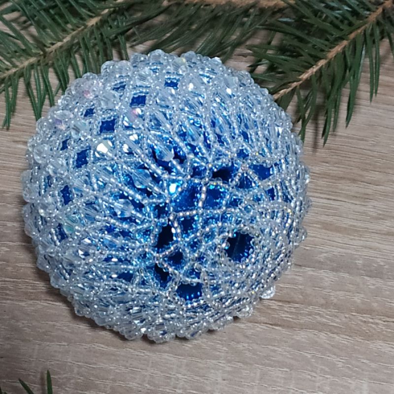 Яркое украшение к празднику, оригинальный подарок коллеге или дорогому человеку. Новогодняя игрушка ручной работы. Декорирована в технике бисероплетения бисером и бусинами. Диаметр шара 7 см. Каждая игрушка упаковывается в подарочную коробку.