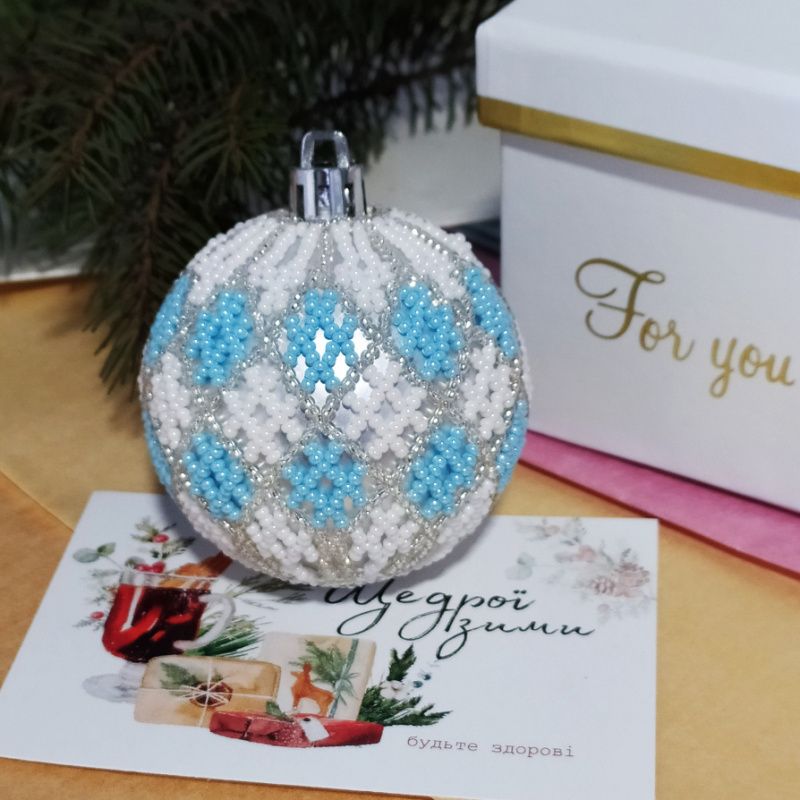 Яркое украшение к празднику, оригинальный подарок коллеге или дорогому человеку. ⠀ Новогодняя игрушка ручной работы. Декорирована в технике бисероплетения бисером и бусинами. Диаметр шара 6,5 см. Каждая игрушка упаковывается в подарочную коробку.