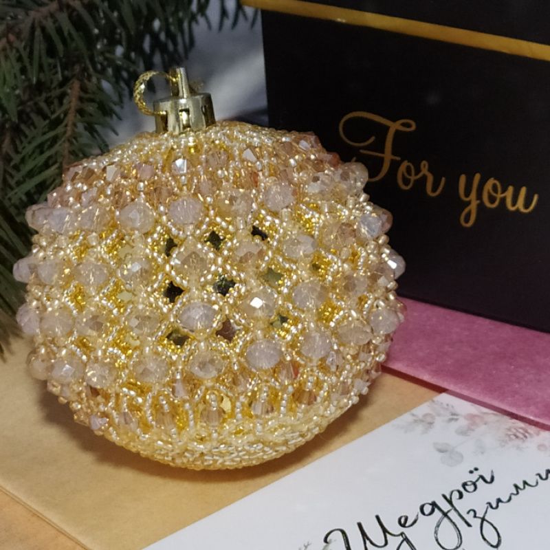 Яркое украшение к празднику, оригинальный подарок коллеге или дорогому человеку. ⠀ Новогодняя игрушка ручной работы. Декорирована в технике бисероплетения бисером и бусинами. Диаметр шара 7 см. Каждая игрушка упаковывается в подарочную коробку.