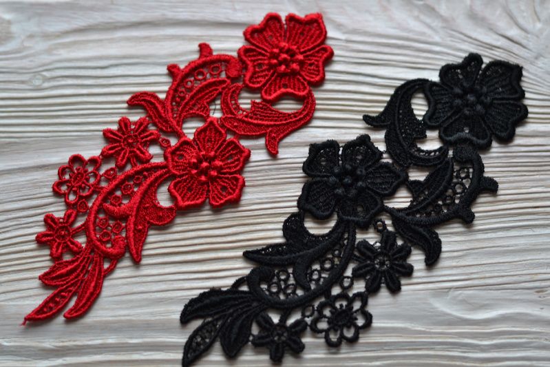 Один стоит 40 грн Ажурные элементы для декора одежды, белья ... Машинная вышивка, вискоза. размер 20 * 8 см. Возможно викрнання в любом цвете! Фото карты цветов есть! Для дальнейшего сотрудничества, карта цветов в подарок! Изготовление от одной единицы!