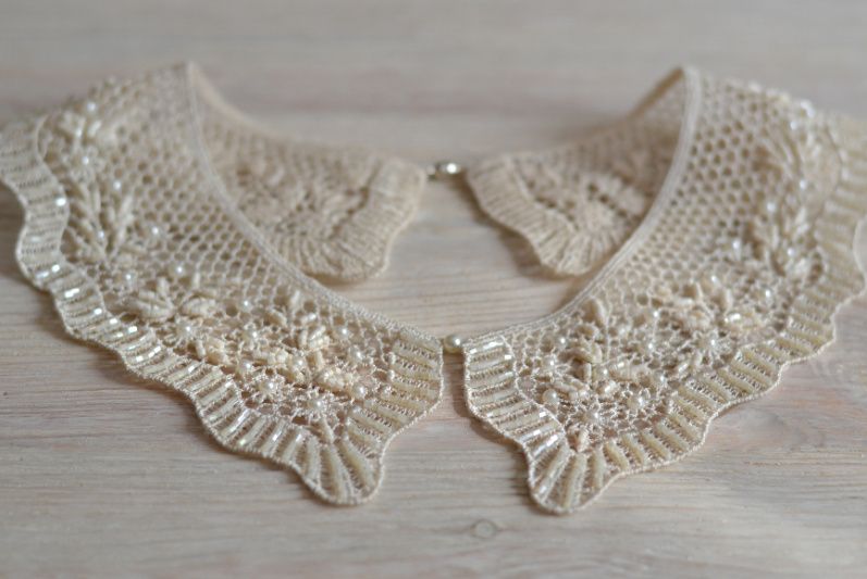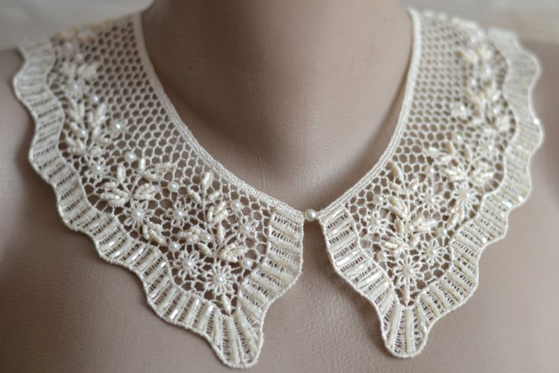 Мастерская Шелковая производит ажурные, накладные воротники, машинная, художественная вышивка, нить - 100% вискоза. Хорошо держит форму, стирается вручную, утюжится через подложку с изнанки. Украшенный вручную пришивным бисером (Чехия) и пришивными кристаллами и клеевыми стразами Swarovski. 22 см длина по внутренней части, 30 по внешней, 6,5 см ширина. Застежка-цепочка регулируется. Отличный аксессуар, дополняющий Ваш образ, как в будний день, так и в праздничный!