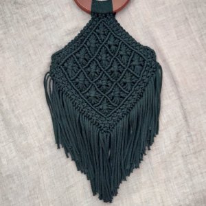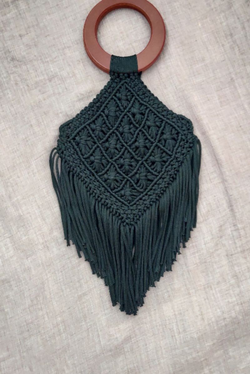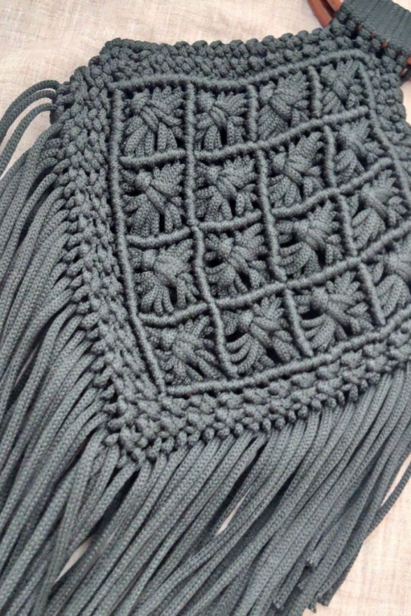Выполнена из чёрного полиефирного шнура 5 мм, ручки натуральный кедр.