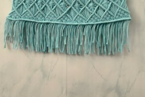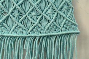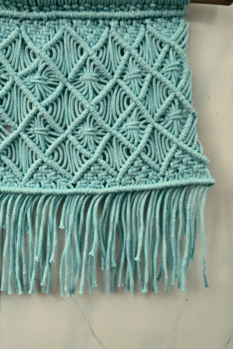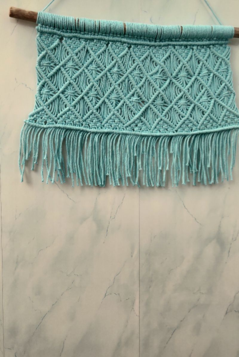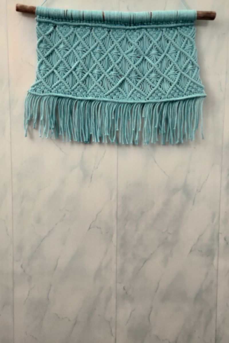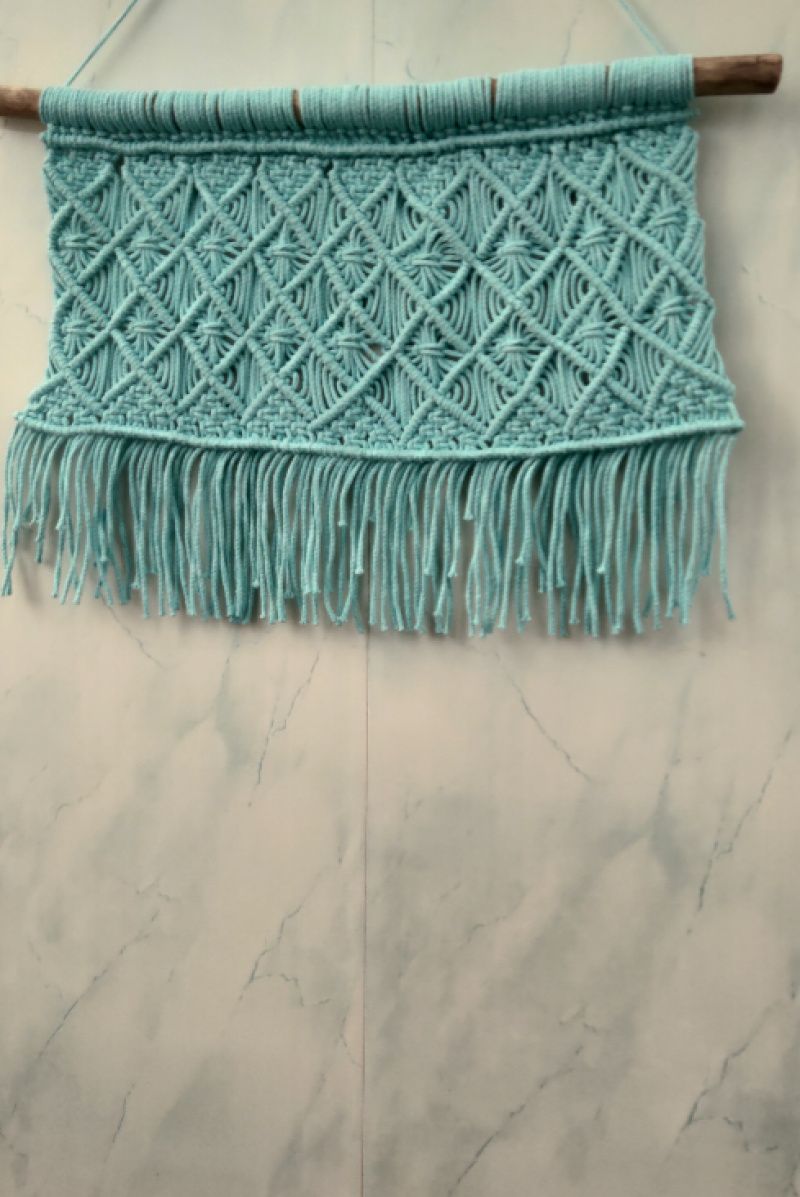 Материалы: деревянная основа 43 см, хлопковый шнур 3 мм, цвет голубой.