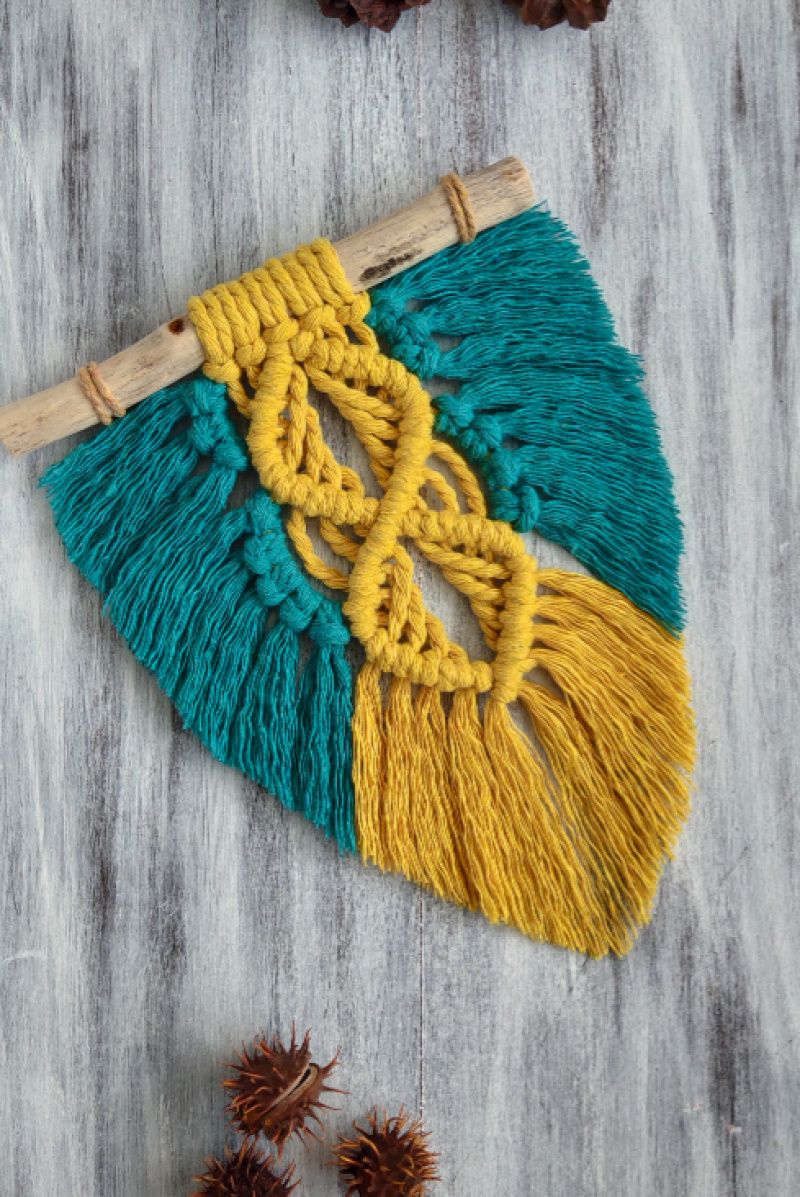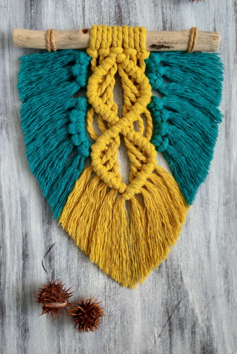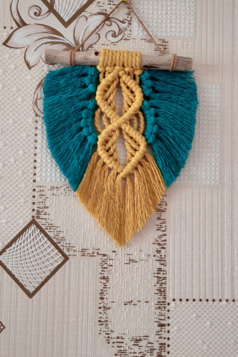 Материалы: натуральная палочка 25 см, шнур крученый 4 мм, цвета - жёлтый, бирюзовый.
