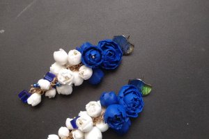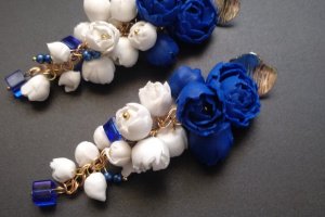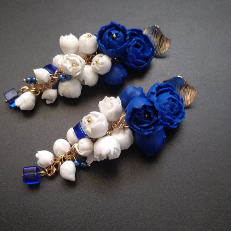 Роскошные длинные серьги 7-8 см на золотистой фурнитуре коллекция корейской фурнитуры #Геометрия#. В наличии есть треугольники. Авторское украшение ручной работы из полимерной бельгийской глины. Очень красивое сочетание цветов синего и белого хрустальные бусины квадратной формы, насыщенно синего цвета. Каждый лепесток на пионы вылеплены вручную.