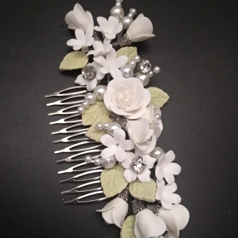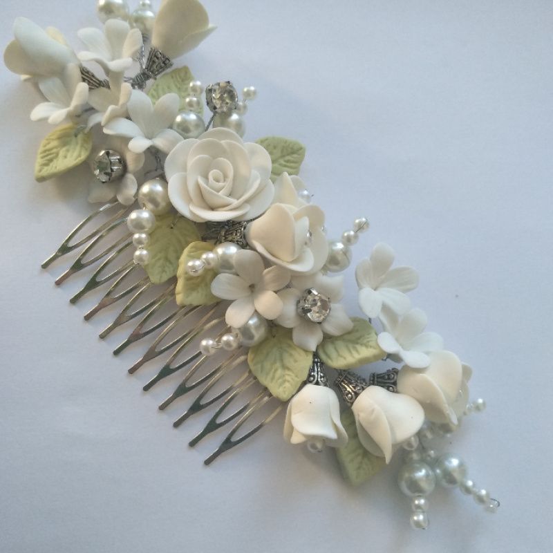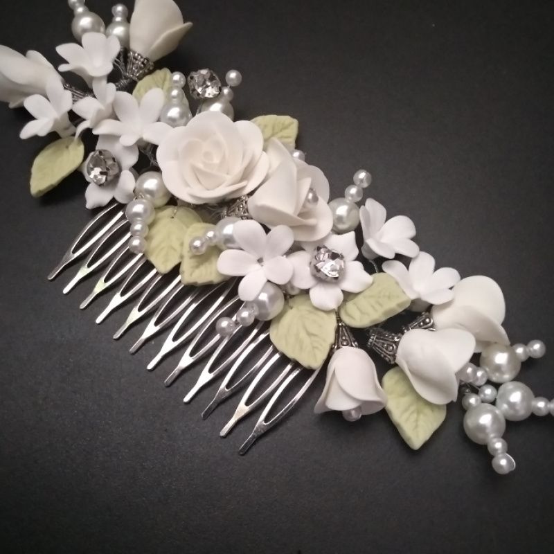 Роскошное свадебное украшение для невесты. Нежный гребень с розами светлое айвори , бутонами , мелкими цветами, жемчужными веточками, светло салатовыми нежными листочками