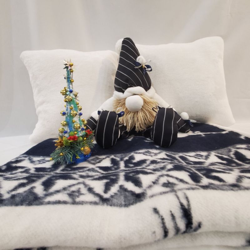 Подарочный детский набор ( коврик 2х1 метра, подушки в наволочках меховых 40х40, гном высотой 55 см,). Орнамент коврика, бело-синий. Гном - это сказочный персонаж приносящий в дом благополучия и богатство, а так же охраняет от плохих людей приходящих в ваш дом., Для ребёнка может стать игрушкой-другом, который может помочь (играючи) выучить цифры, буквы, слова и игру.