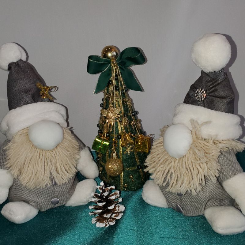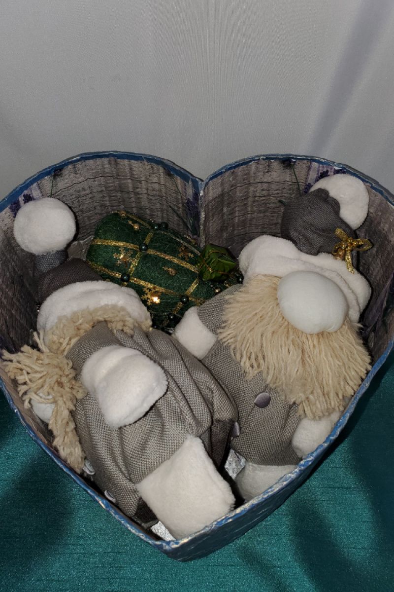 Мягкая игрушка Гном * одна из обязательных украшений Нового года, Рождества. Ведь Гном самый сказочный персонаж, а ведь эти праздники ассоциируются с волшебством, с ожиданием какого то чуда.... Гном ручной роботы, сделан с любовью и наилучшими пожеланием для будущих владельцев игрушки. Наполнен синтепоном, приятные ткани, украшен бубенчиками, которые своим звоночками призывают в дом счастья, веселья, богатство, здоровья.... Прекрасный подарок деткам к дню Святого Николая, предвестнику новогодних праздников, Рождества и других праздников в нашей жизни. Высота гнома 55 см. В праздничной коробке в виде сердца. 2 гнома х350 гривен, ёлка11 195 гривен, коробка 150 гривен = 1045. При заказе на сумму 1000 гривен скидка 10%